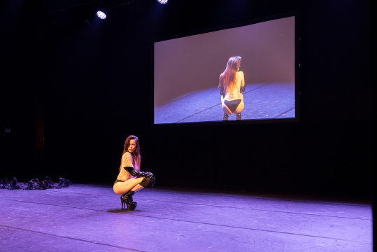 - Alexandra Bachzetsis (choreographer) & Lorenzo Seghezzi (designer) with performer Roberta Racis