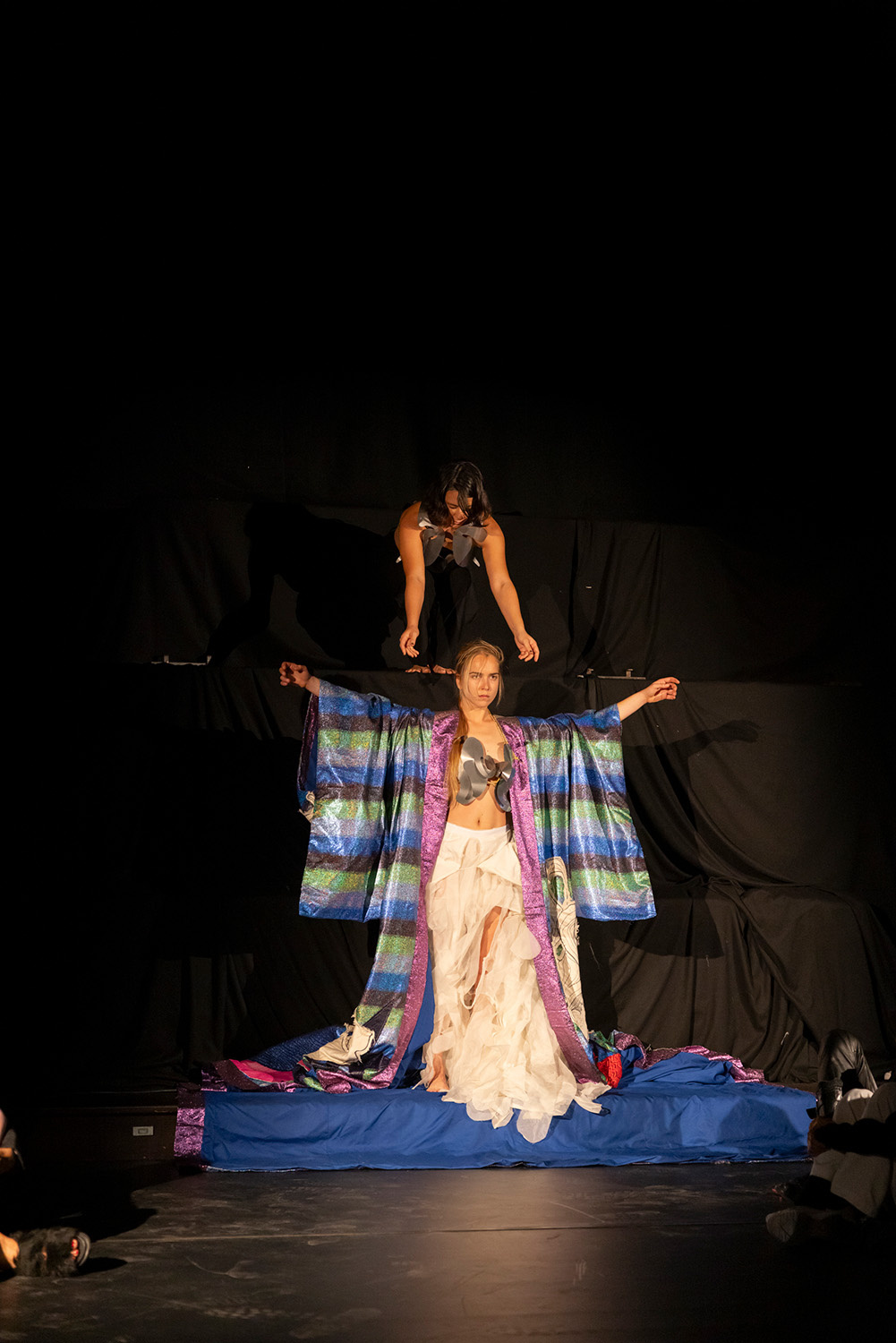 The outcome was a site-specific journey composed of three short performances, the result of a process in which body, costume, and movement mirrored and influenced one another, generating new artistic trajectories.