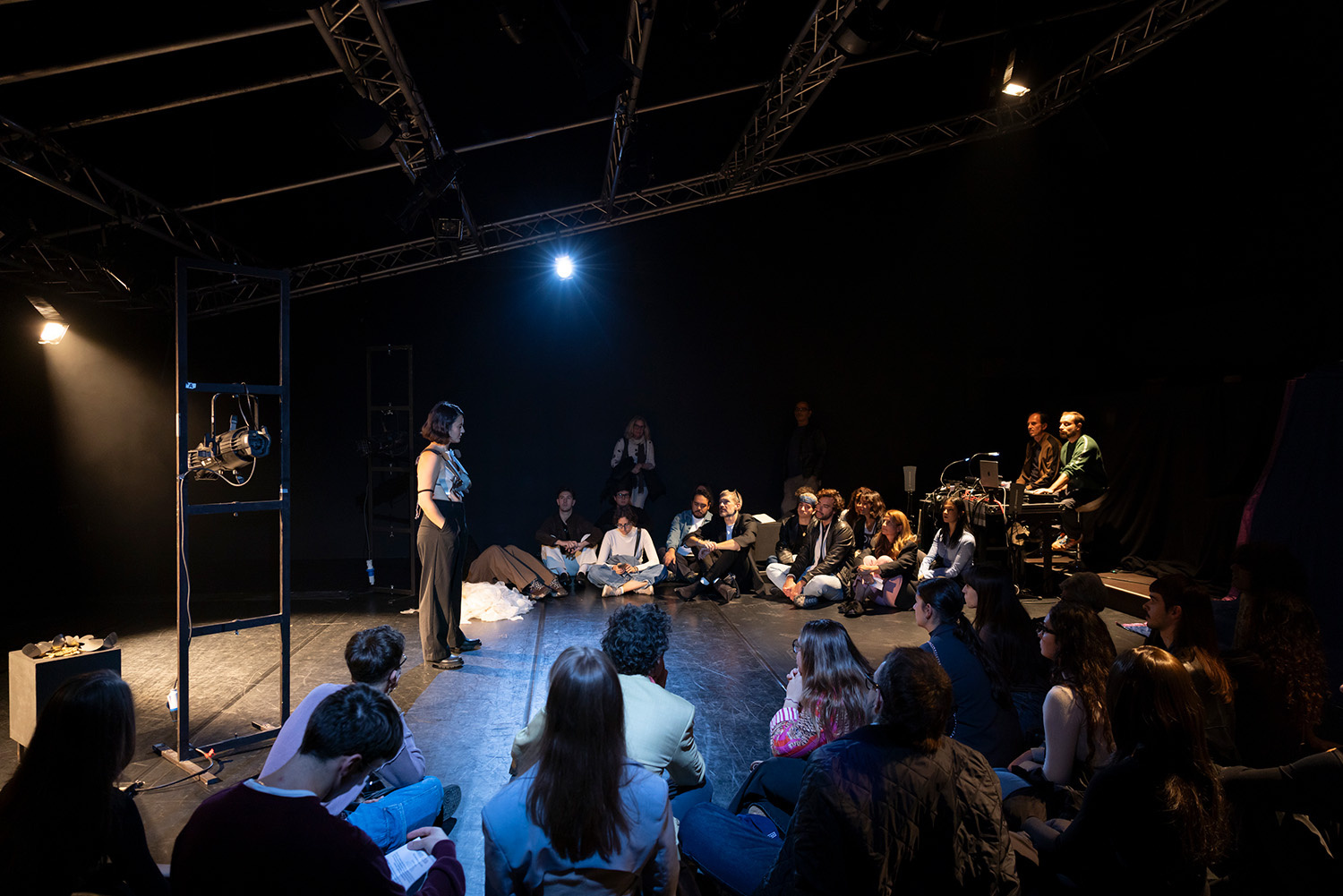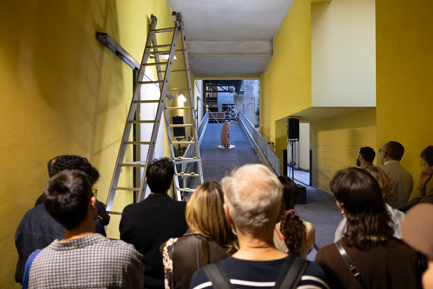 Guided by chance as a generative principle, both the working themes and the performance spaces were randomly drawn at the beginning of the residency—opening up a space for discovery and unprecedented dialogue. The selected theme was: “The Invented Hagiography of a Saint”, around which each group developed its own performance.