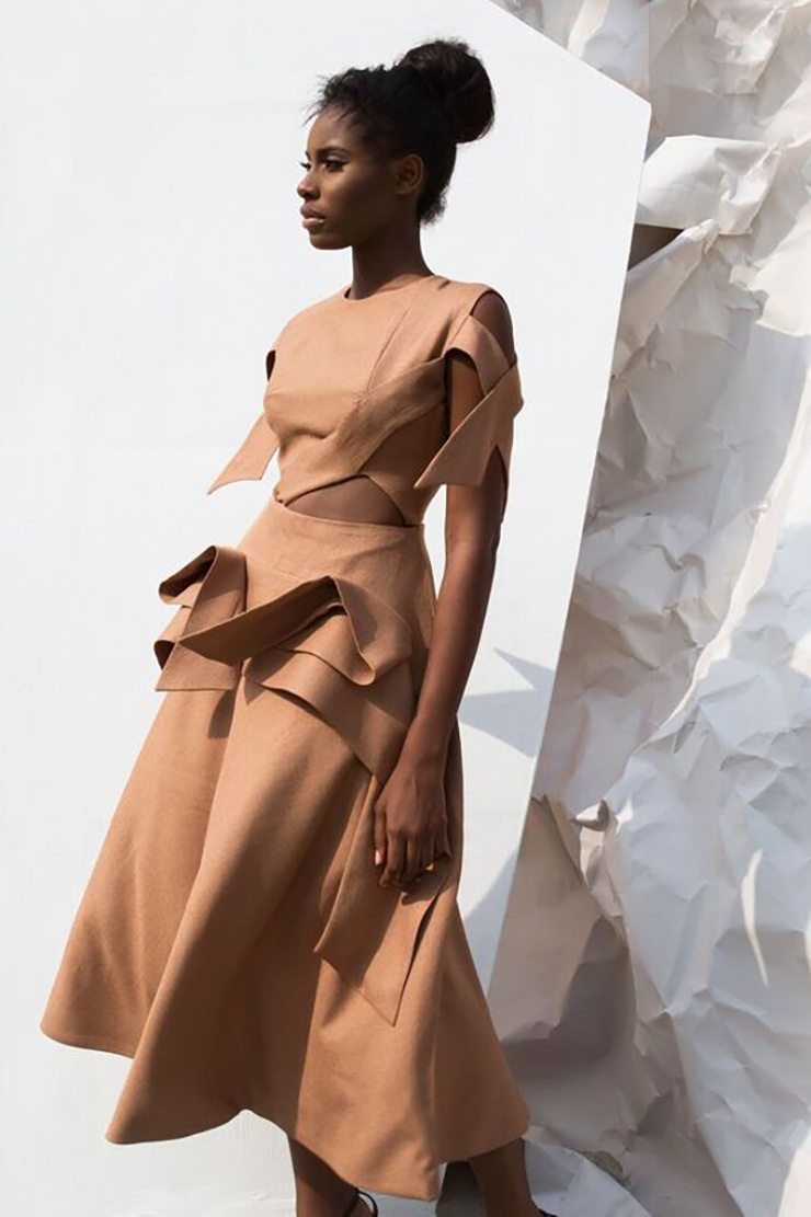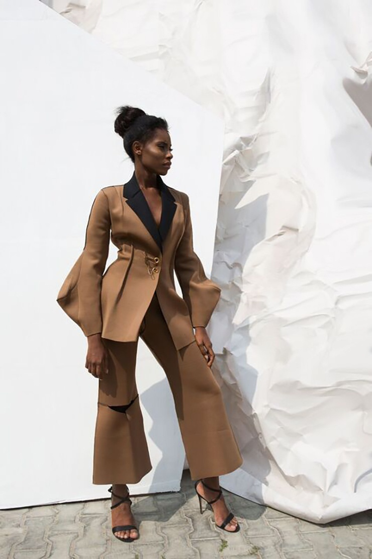 Meena is a Lagos based womenswear brand founded by Uju Offiah in 2011. The name Meena is an ode to the strength and beauty of the designer's mother who the brand is named after. The Meena design philosophy is based on modern femininity, architectonic undertones and confident minimalism. Since its debut collection titled 'Silver Shadow', Meena has focused on actualizing and innovating itself while staying true to its DNA of origami inspired details and sophisticated cuts. With the success of the Meena's Spring/Summer 2016 Collection titled 'Ochiagha' (an Ibo native meaning for the word 'Warrior'), Meena was tagged the highlight of the Lagos Fashion & Design Week 2016 by Daria Shapovalova in her article for American Vogue listing top 6 Standout Collections. Meena was also featured in the Africa Rising Story by Modelsdot USA. In February 2016, Meena was among the designers chosen to represent Nigeria at the International Fashion Show by British Council. Meena was also invited to the year long 'African Fashion City' Exhibition at the Royal Pavilion & Museums in Brighton England alongside other African Brands. Uju Offiah is the Founder & Artistic Director of Meena. A graduate of Law from the University of Nigeria Nsukka, and a member of the Nigerian Bar Association. Uju went in pursuit of her true passion - creativity and actualizing concepts hence the birth of Meena. Prior to her label launch, she did a brief internship programme with a Nigerian based womenswear designer, Ituen Basi.
