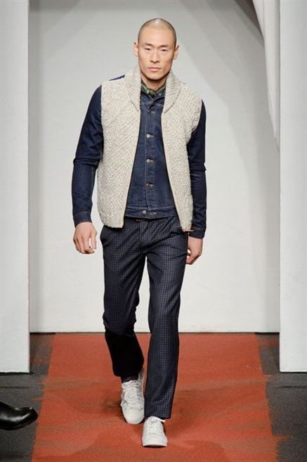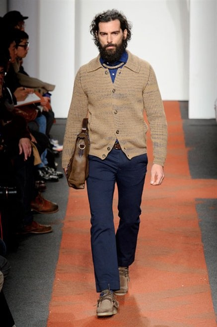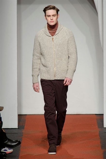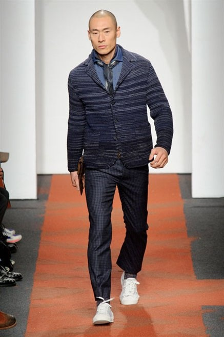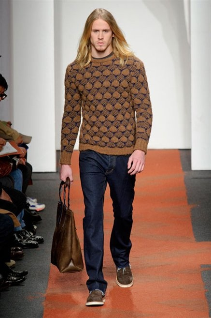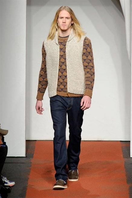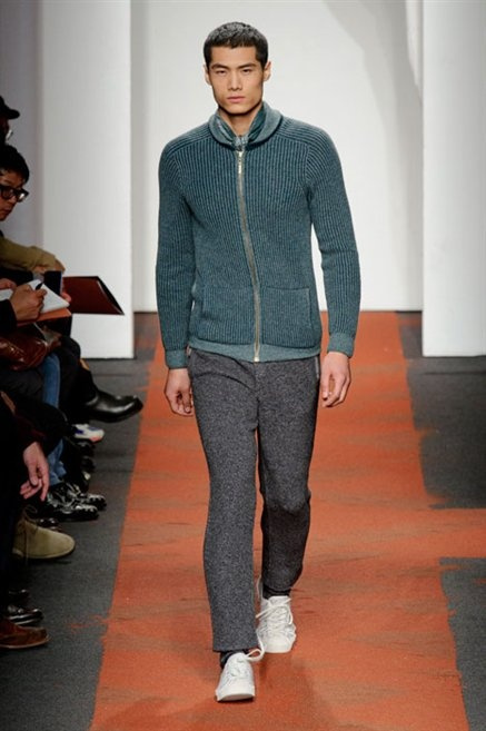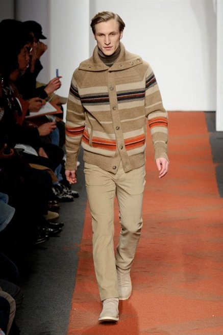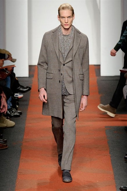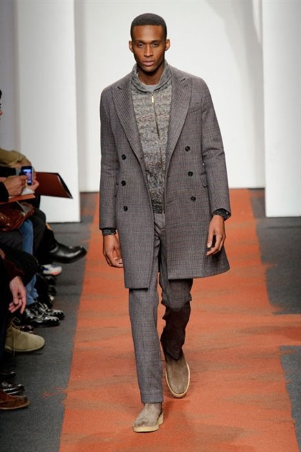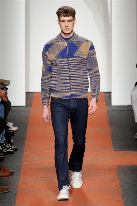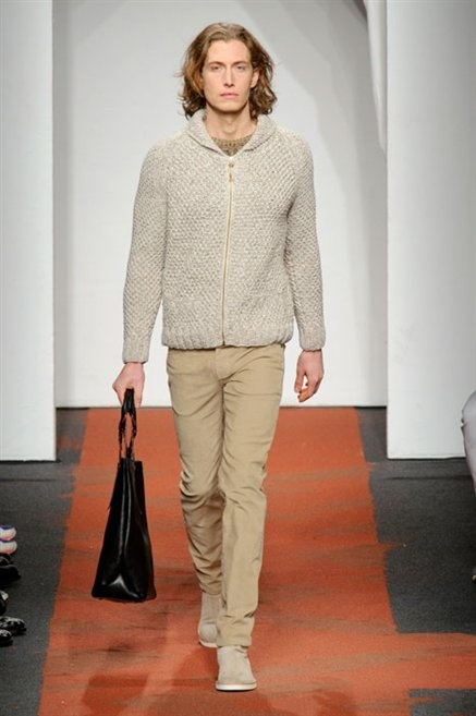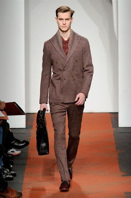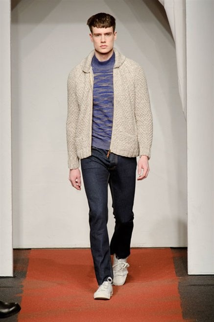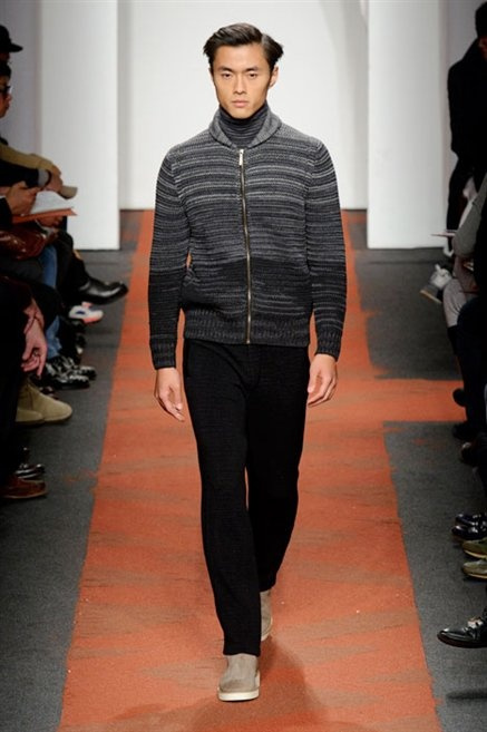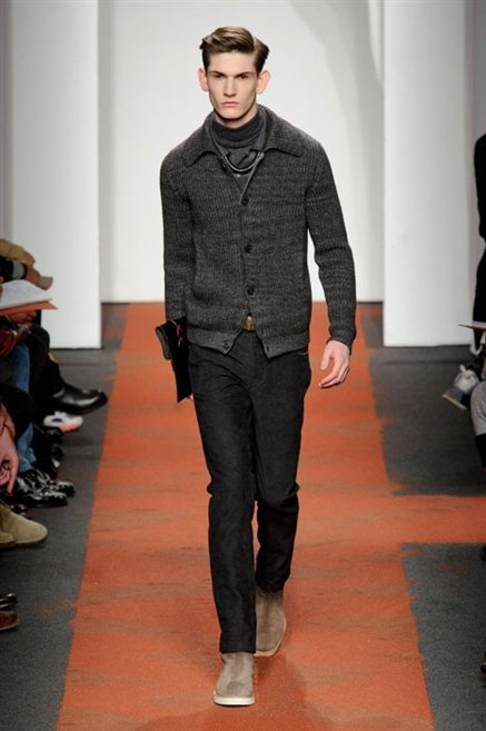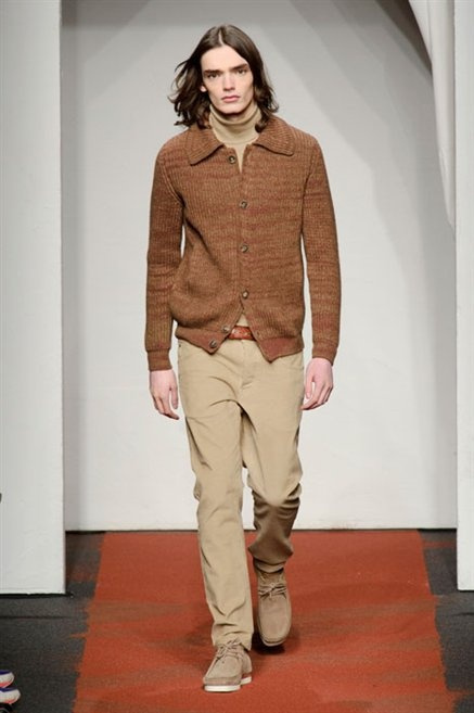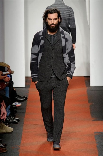 I colori sono linee indipendenti che seguono un proprio percorso. Solitarie, spiccano le une tra le altre. Nessuna prevale. Non ci sono toni accesi, impasti o mix artefatti. Tutto è disegnato secondo una precisa volontà. Missoni sceglie di vestire un uomo dal carattere forte, che non ha bisogno di adornarsi di luci chiassose. La personalità è l'accessorio più importante. Nelle morbide linee della maglieria si insinua il jeans. Blu scuro, deciso. Intuitivo. L'uomo Missoni è un viaggiatore elegante, che decide di passare inosservato, almeno in apparenza. Restano i rossi, bruciati e aranciati. I blu. Il nero è una rapida apparizione. Assorbe la luce e scompare.