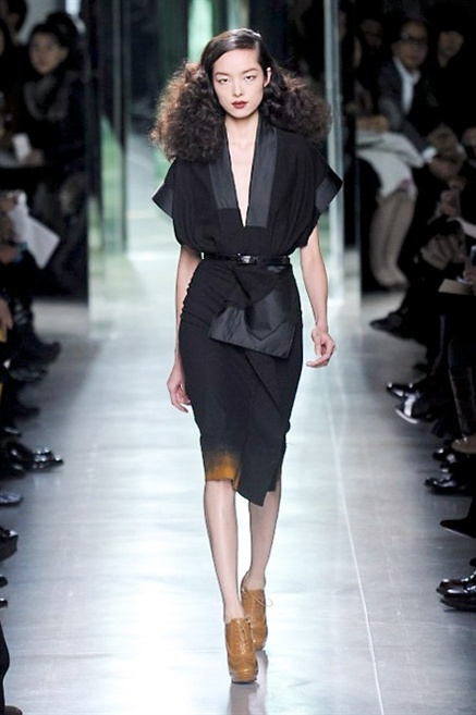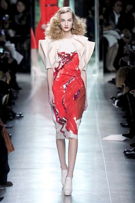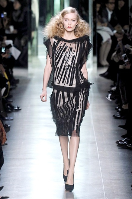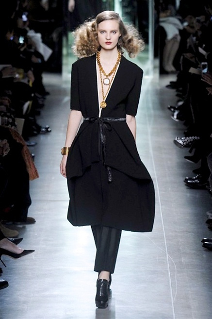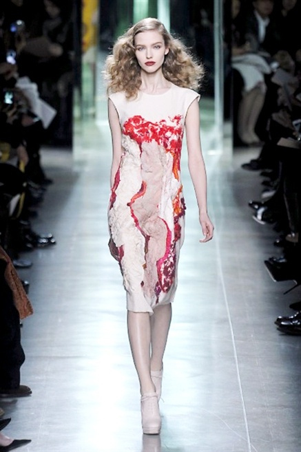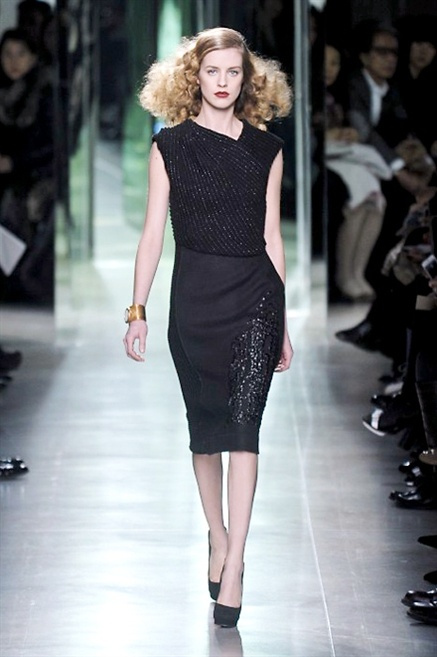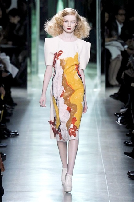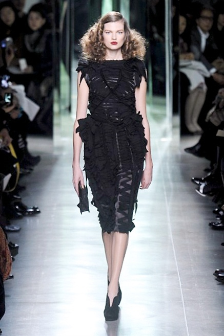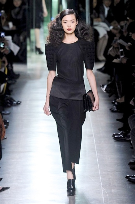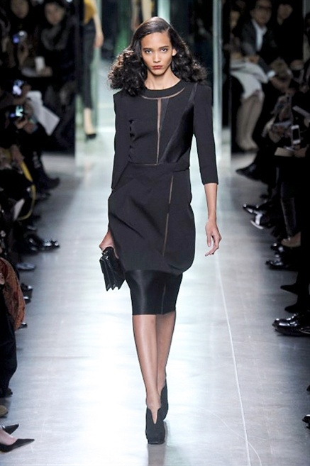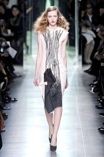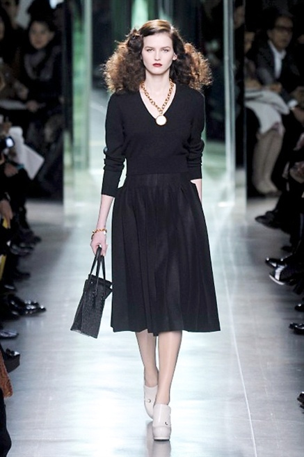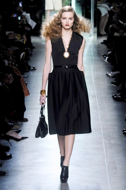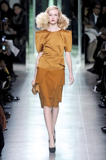 Intrecci innescati da linee che a volte non restano parallele. L'eleganza rigorosa che contraddistingue Bottega Veneta viene, per la prossima stagione, accantonata. Il palcoscenico ora appartiene a luci e ombre. Giochi di proporzioni degne di un architetto: gonne plissettate, giacche strutturate, volant. I volumi diventano più ampi e i materiali più spessi. Miscele di accostamenti e colori: dal cuoio al nero, dal blu al giallo e, infine, al rosso. Macchie di colore e immagini astratte su tubini raffinatiCintura in vita e spalle costruite come se fossero le torri di un castello. Le lunghezze non vanno oltre al ginocchio e lasciano immaginare gambe sinuose. La seduzione parte dall'intuito.