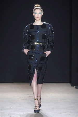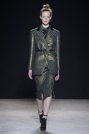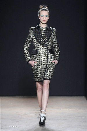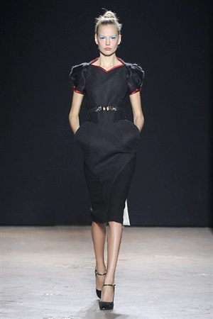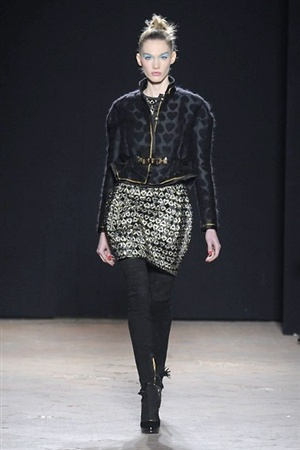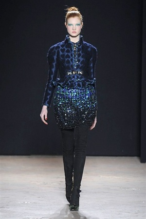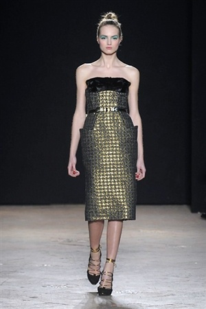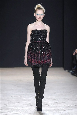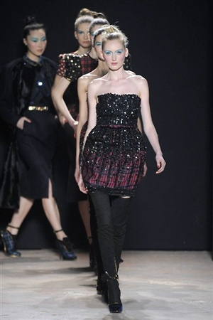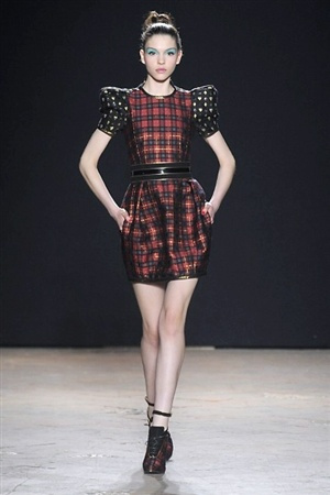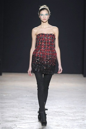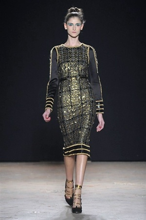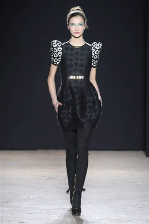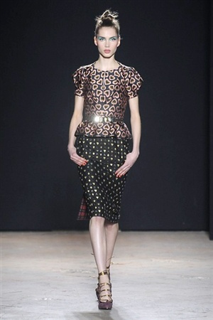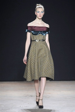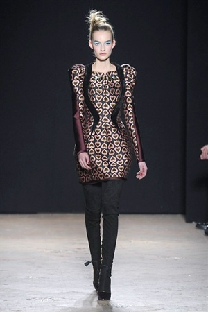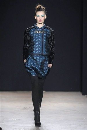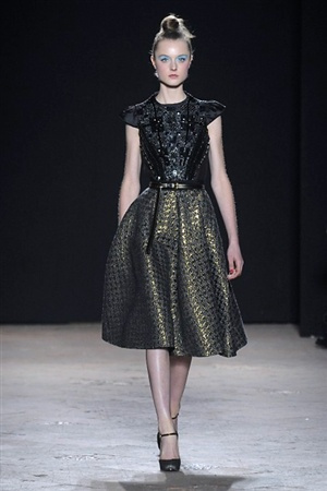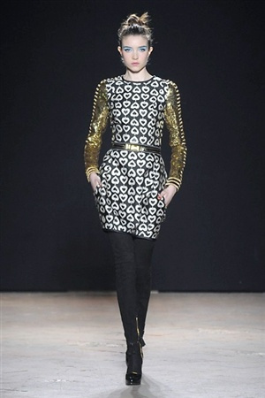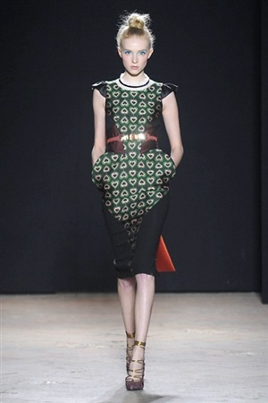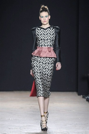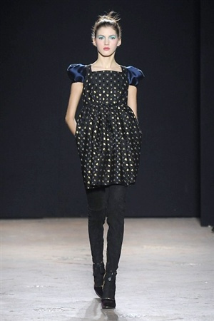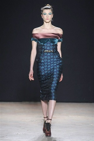 L'immaginario iconografico di "Alice nel paese delle meraviglie" ha da sempre affascinato ed ispirato gli stilisti, ma nella collezione di Aquilano.Rimondi dell'autunno/inverno 201-2014 non rivive semplicemente un'immagine evocativa, ma lo spirito stesso del racconto. Tutto è insolito nelle avventure che vive Alice e tutto è insolito sulla passerella: le forme dell'alta moda anni '50 convivono con proporzioni moderne, il realismo di esse con il senso della teatralità che caratterizza il duo creativo, ad esempio nel palloncino scultorio che sembra quasi pensato come costume per una rappresentazione teatrale. Quello di Alice è un mondo di sorprese, un po' come il tubino in pied-de-poule nella parte anteriore e riccamente decorato dietro, o le sagome di cuori che negli abiti a matita. Le decorazioni sono sempre opulente, ma mai eccessive, è un gioco di luccichii di colori splendenti come il verde smeraldo, il giallo oro e il rosso delle carte da gioco: cuori, fiori, quadri e picche non sono mai stati così eleganti.