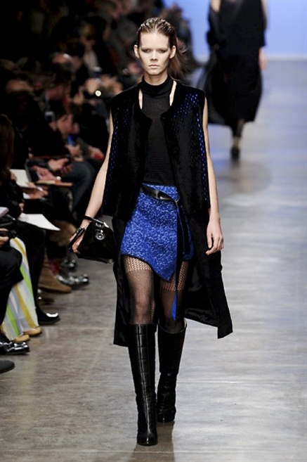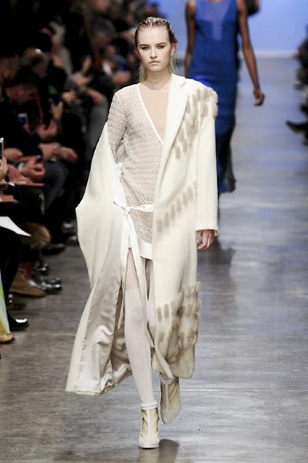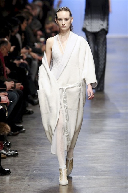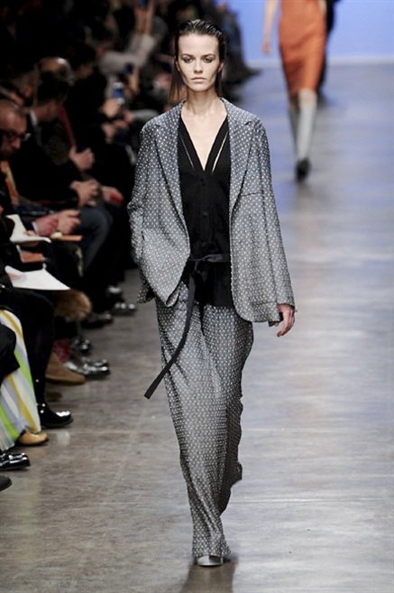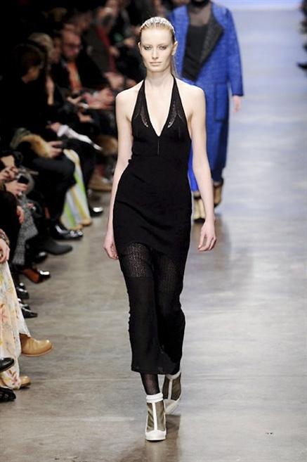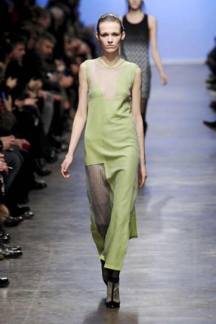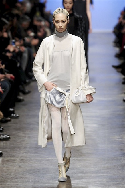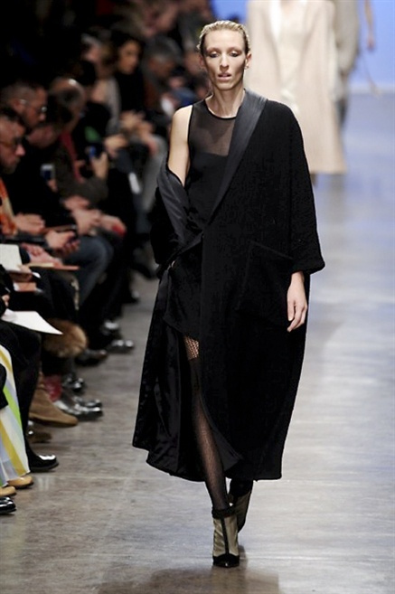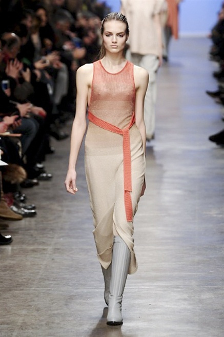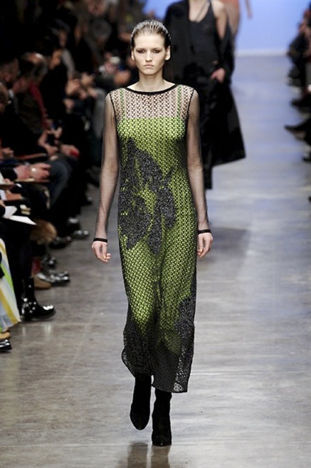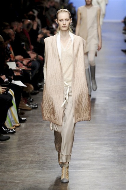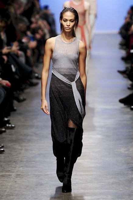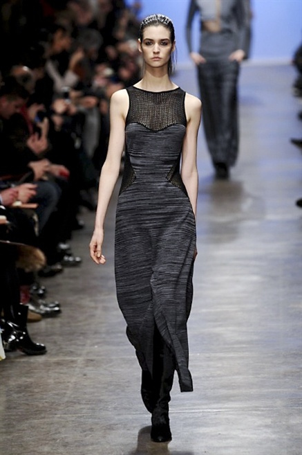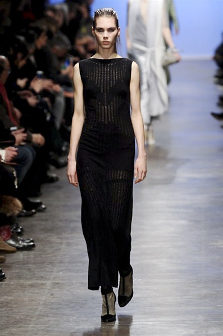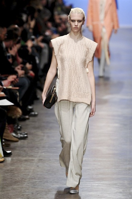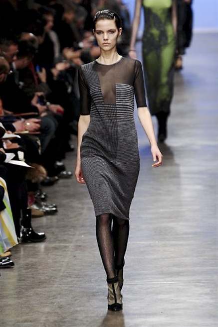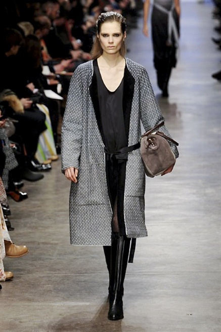 Colori pieni, uniformi. Manca la trama Missoni, sostituita da sfumature e trasparenze. Lunghezze e forme sinuose regalano una silhouette morbida. Nessun eccesso. Pura semplicità. La palette di colori si tinge di nero, prevalentemente, lasciando spazio al verde mela, al pesca, al blu e al grigio. Immancabili pennellate di bianco. I capispalla sono destrutturati: nessuna spallina, nessuna curvatura imposta. Indossare un cappotto deve essere un piacere attorno a cui ci si avvolge, quindi, imperativo sentirsi comfortable. Anche la fattezza ne rende l'immagine, infatti, sono realizzati in montone.La femminilità della maglia lavorata e le trasparenze che scoprono un nude look si alternano a scialli calati sulle spalle. Morbide seduzioni non ostentate.