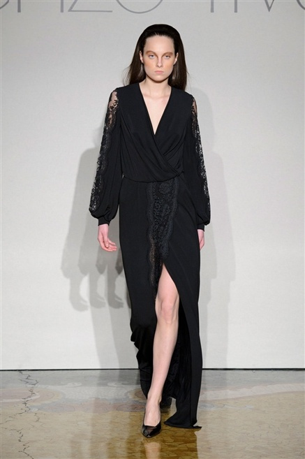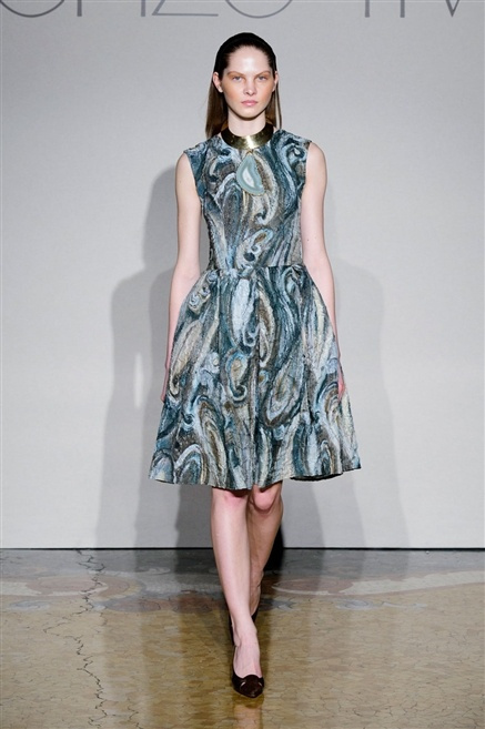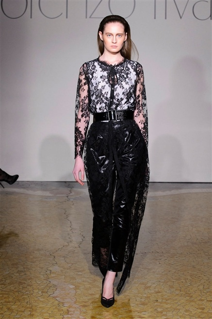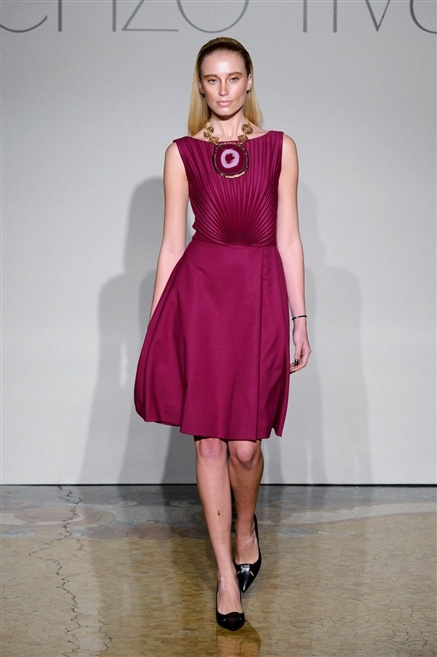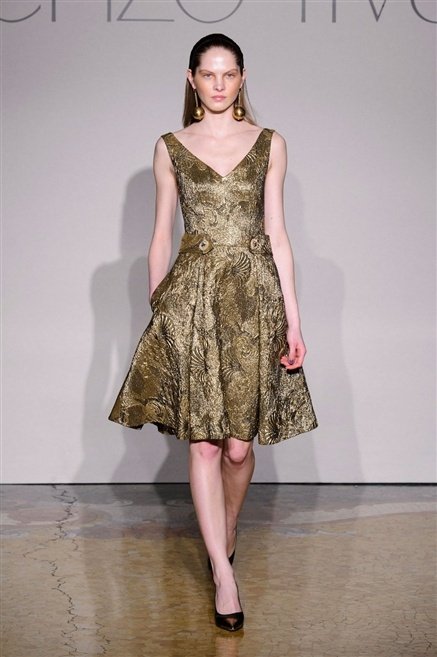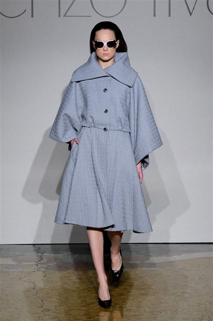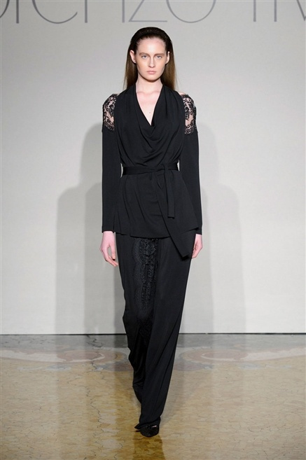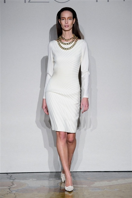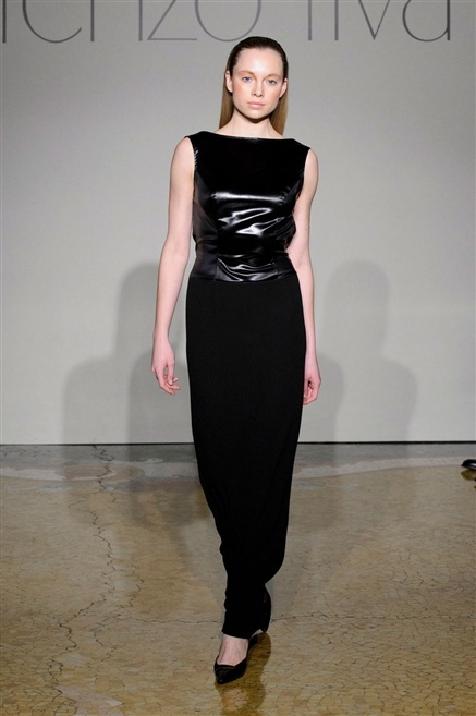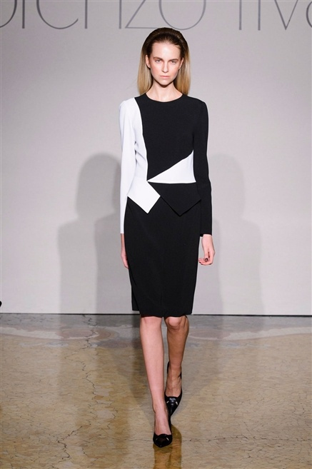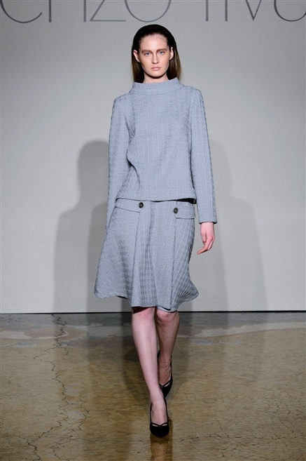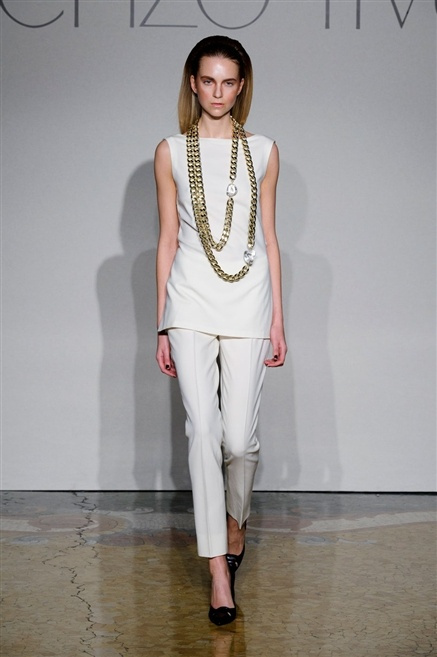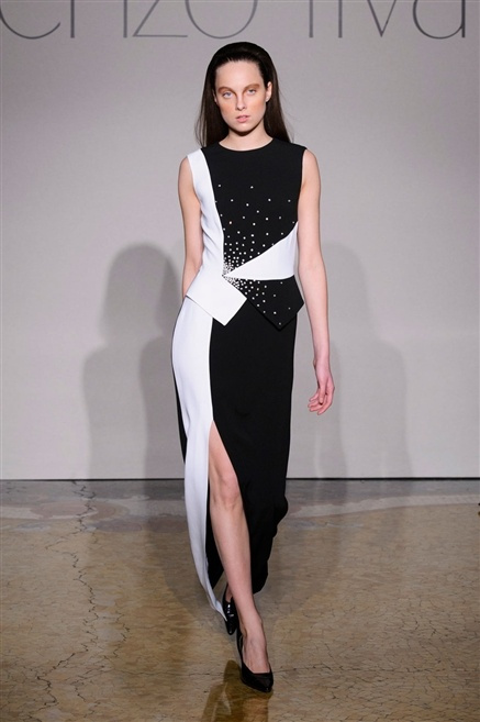 Sembra esserci tanta nostalgia sulla passerella di Lorenzo Riva dell’autunno/inverno 2013-2014, nostalgia verso i tempi dell’Hollywood sul Tevere, quando dive straniere popolavano la via Veneto. Pensa così ad un guardaroba fatto di occasioni, tutto rigorosamente bon ton, casacche e pantalone, gonne al ginocchio e tubini. , tocchi di colore (su tutti un profondo azzurro cielo) tra il bianco e nero che predominano.