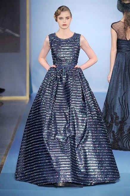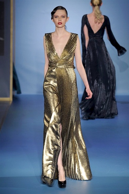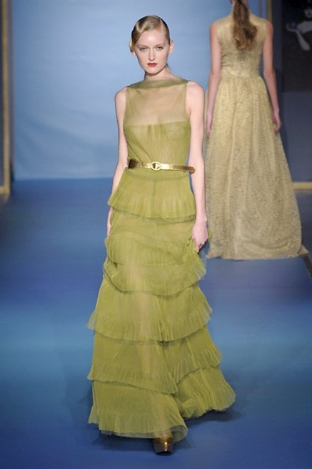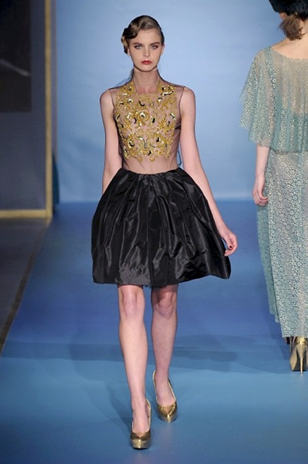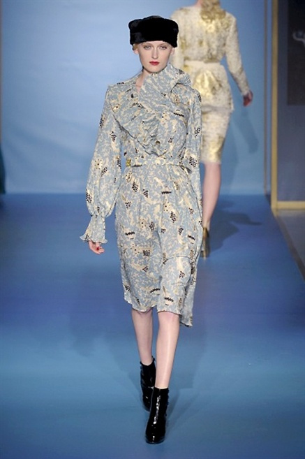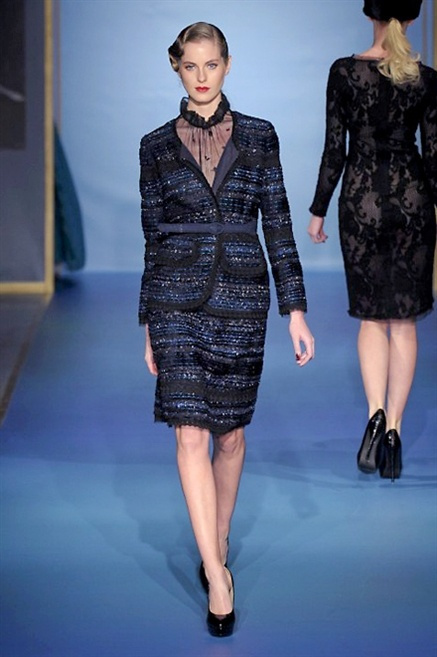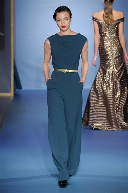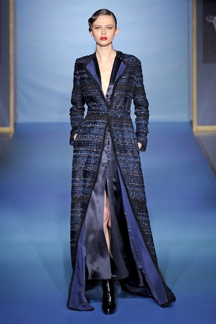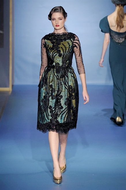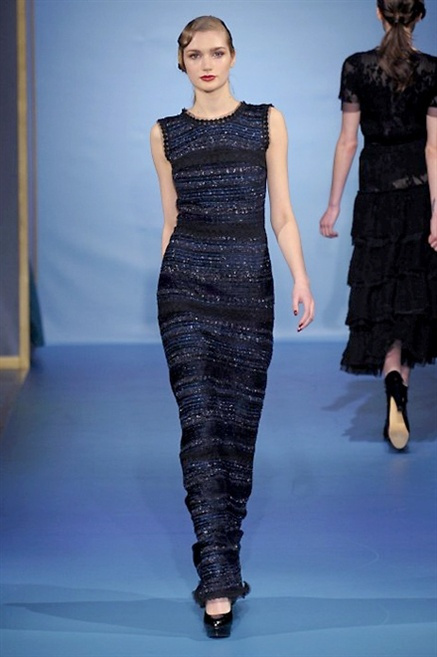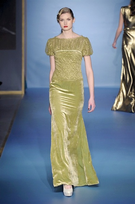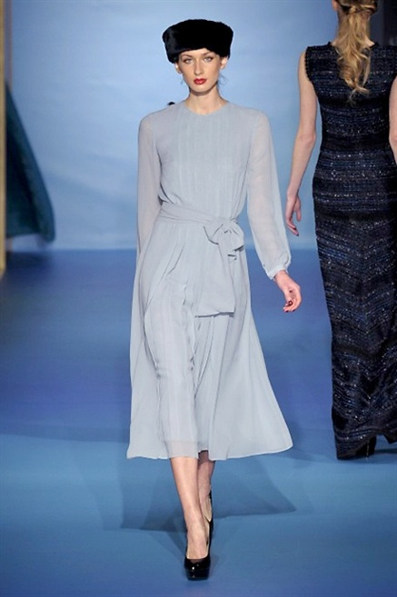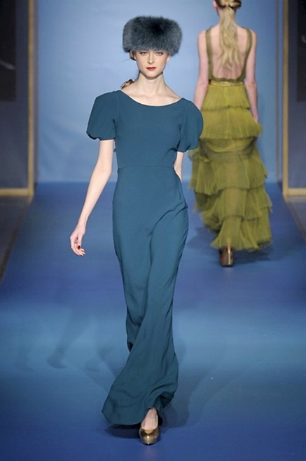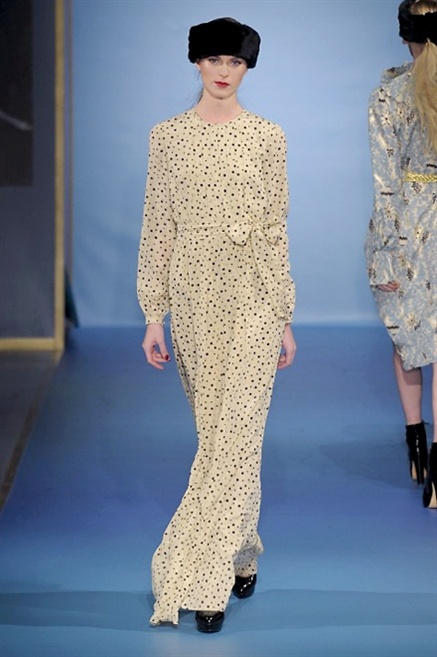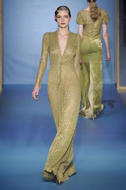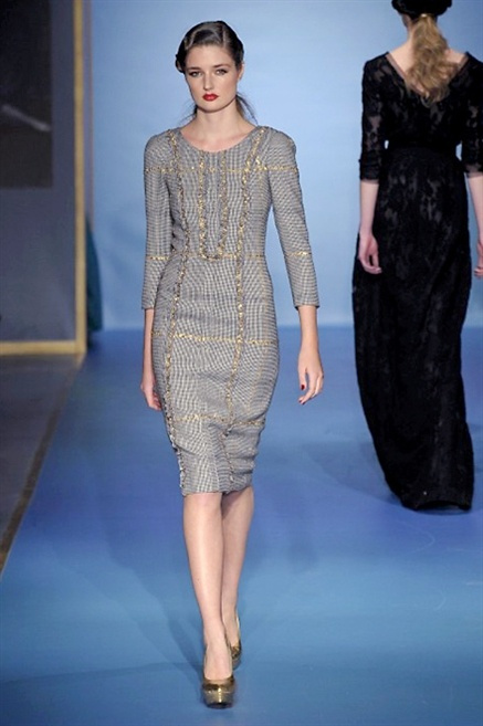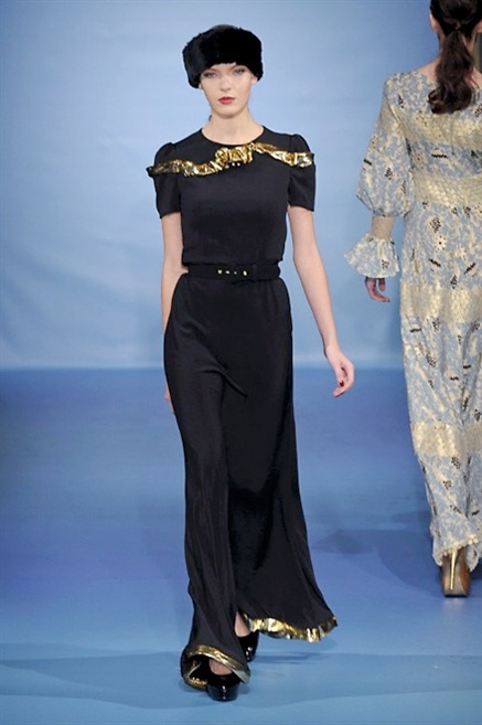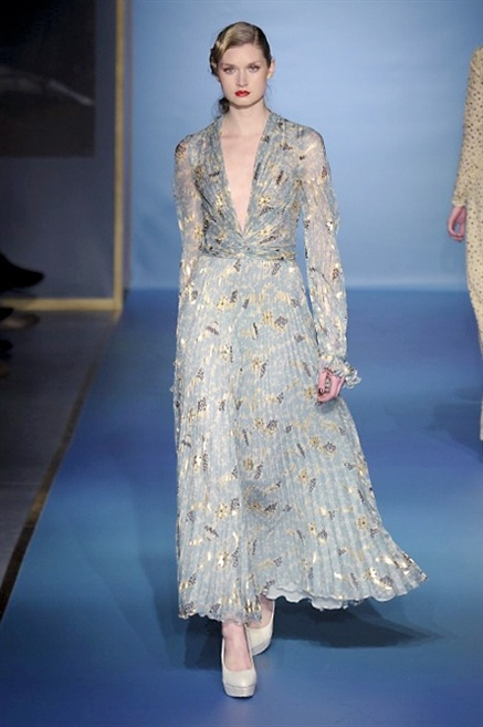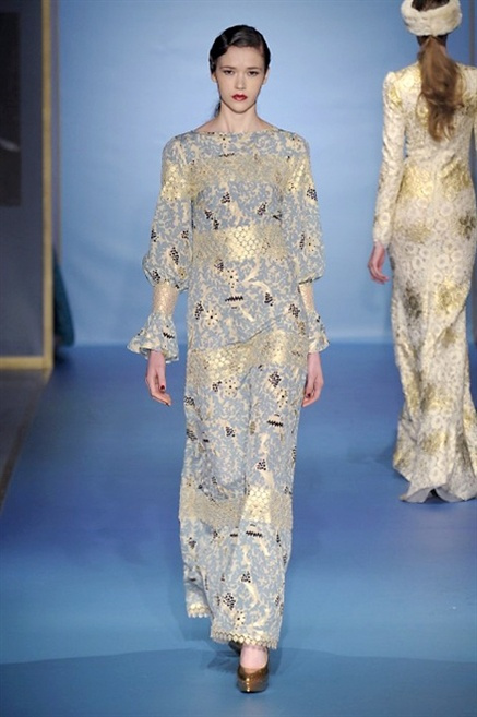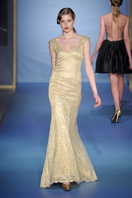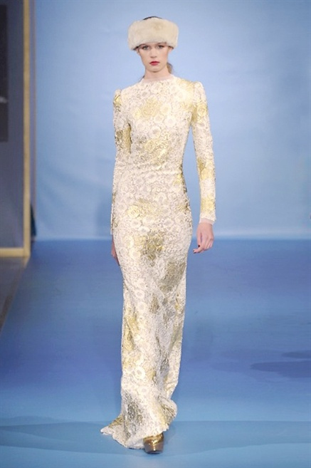 Cappotti lunghi che sembrano tuniche, abiti fascianti, giacche indossate con pantaloni over e lunghi fino a coprire la scarpa, candido pizzo, abiti da sera bianchi come se si dovessero indossare sull’altare. Questa è l’eleganza, che ripropone ancora una volta sulla sua passerella, Luisa Beccaria. Solo sul finale si rompono gli indugi e sotto plissè trasparenti o preziosi ricami si intravede la pelle delle modelle. Gli anni ’30 e ’40 sono assunti a modello di eleganza e reinterpretati con gusto contemporaneo.