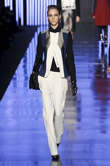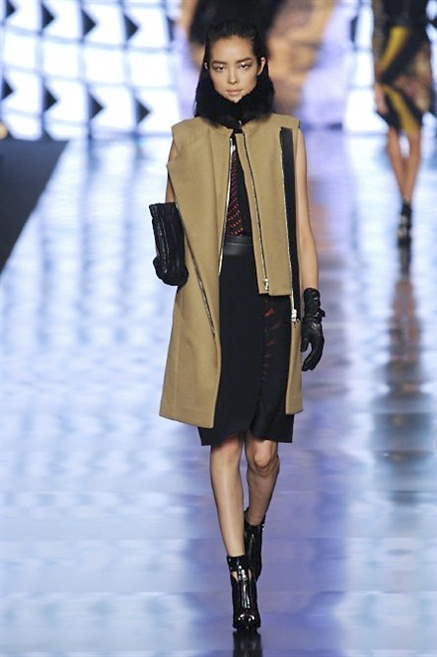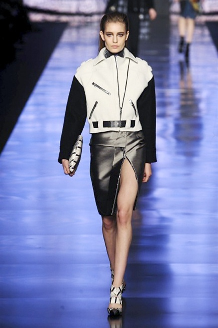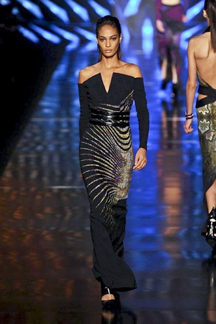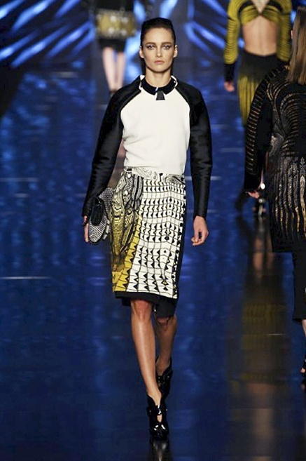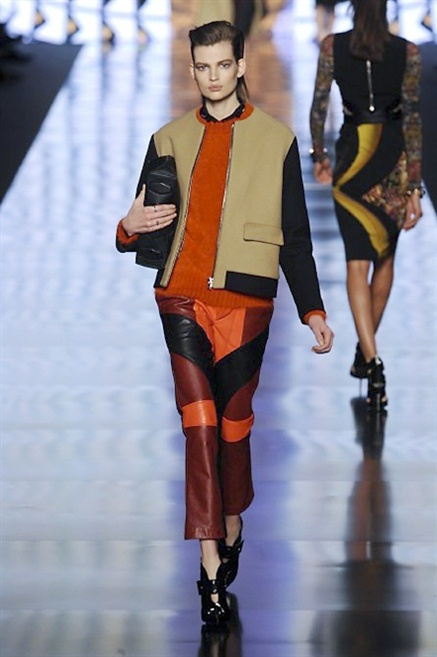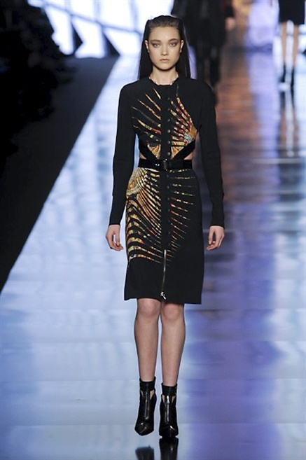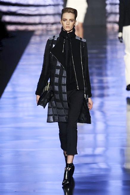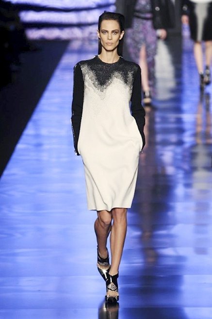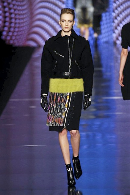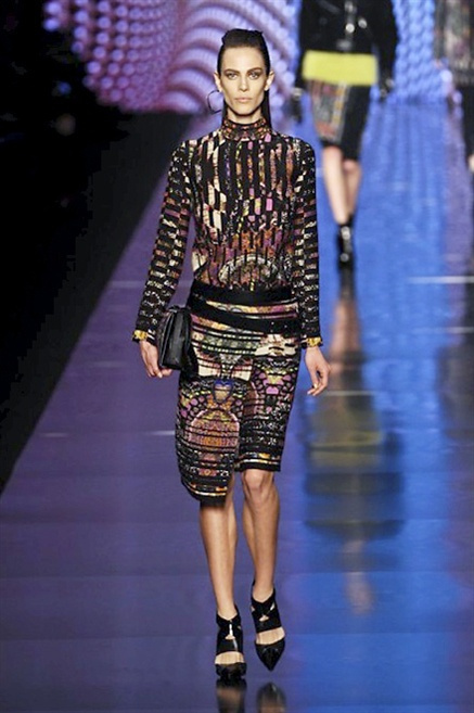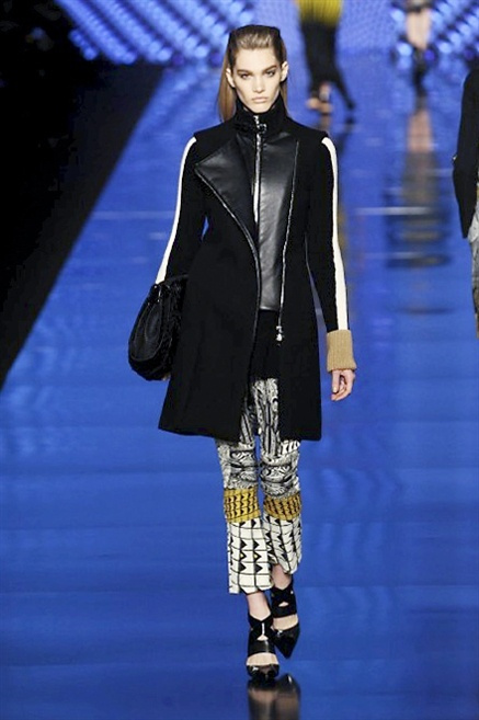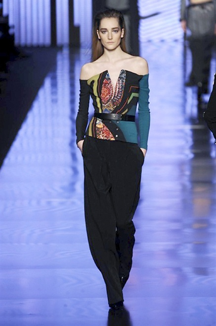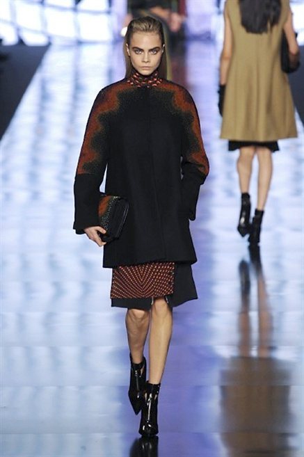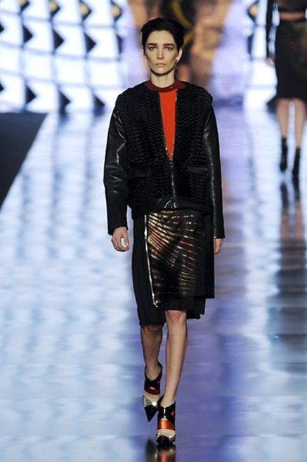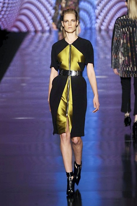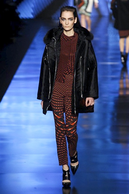 Cosa può trovare spazio in pochi centimetri di sottile stoffa? Un intero universo, perfino epoche intere, se con abilità si gioca a mischiare stampe provenienti da mondi diversi. Etro dunque punta ancora una volta sul proprio pezzo forte, ma non tralascia l’innovazione, così i disegni storici della maiosn, primo tra tutti il paisley, sono rielaborati digitalmente. Porcellane di San Pietroburgo si fondono con incrostazioni lunari, di definito nella collezione c’è solo la silhouette vicina al corpo e la vita segnata da cinture di pelle che a volte sono incorporate negli abiti. Asimmetrie, contrasti di tessuti ed effetti di profondità danno il senso del movimento, della mutazione che nella moda, come nell’universo è costante.