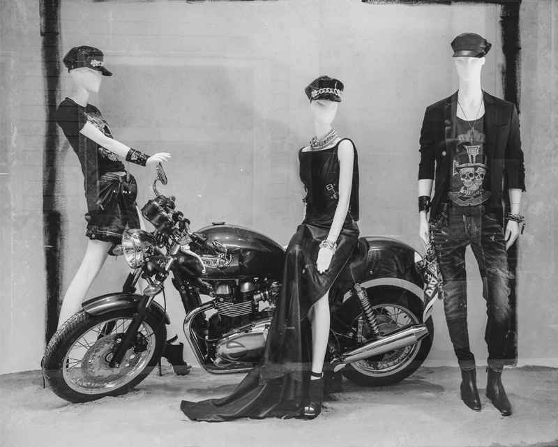 Bad boy come Steve McQueen sono sempre stati un grande riferimento iconografico per il brand canadese che  ha voluto creare una serata a tema “Biker couture”. Giacche da motociclista, pelle nera, cappellino in testa anche per la vetrina di via Verri 4, dove si trova il flagship store che ha ospitato l’evento. Allora sarà forse questo il trend della prossima estate? Un viaggio in total Dsquared2 in sella ad una motocicletta Triumph Motorcycles?