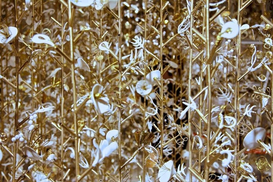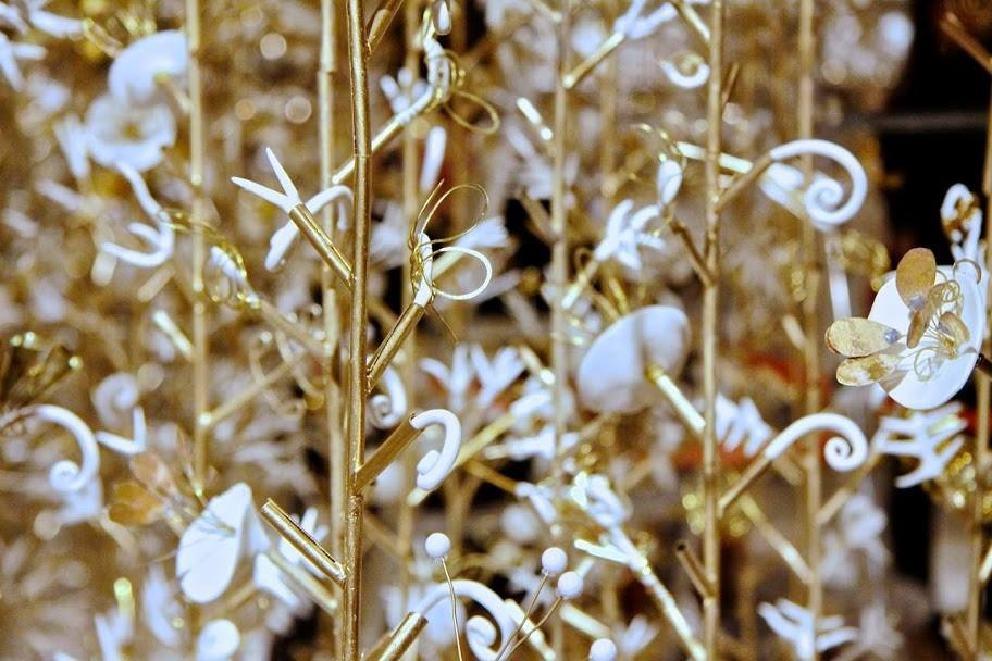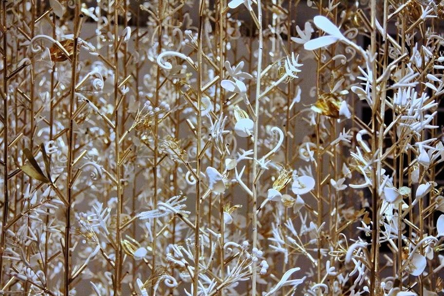 Decine di fiori di porcellana, circondati da foglie in sottilissimi fili di ottone piegati a mano, compongono un magico giardino delle forme sinuose e leggere. Un progetto che testimonia, ancora una volta, l’attenzione dell’artista per la natura e la bellezza che in essa si manifesta.