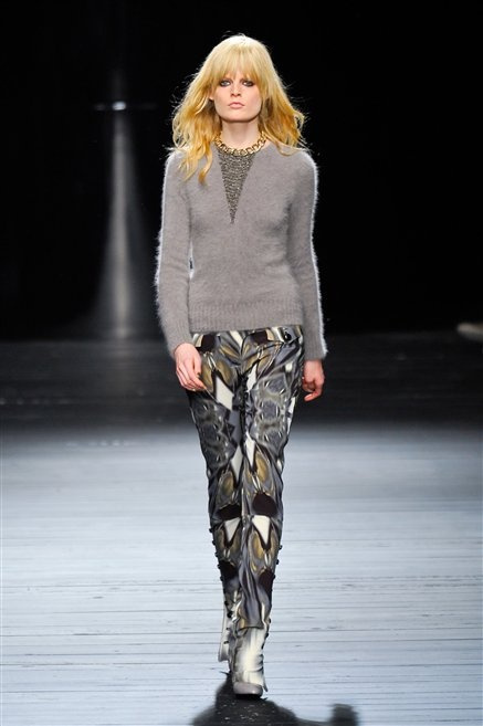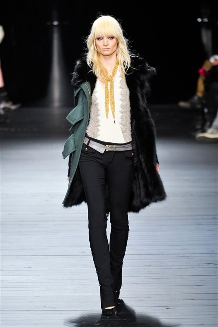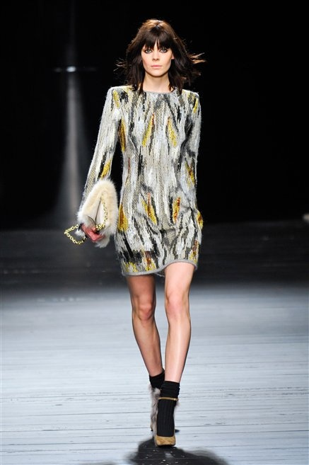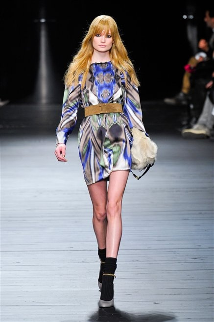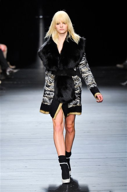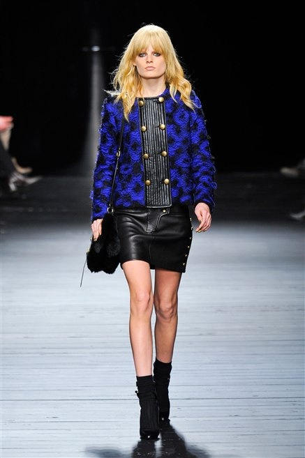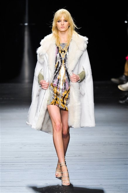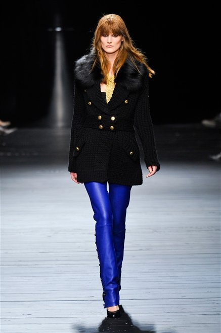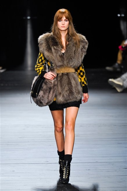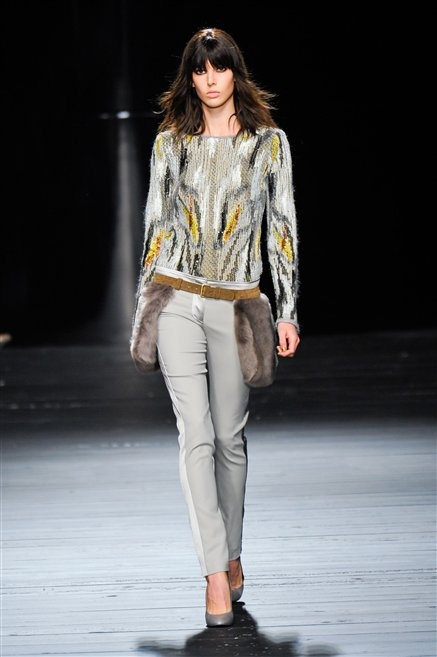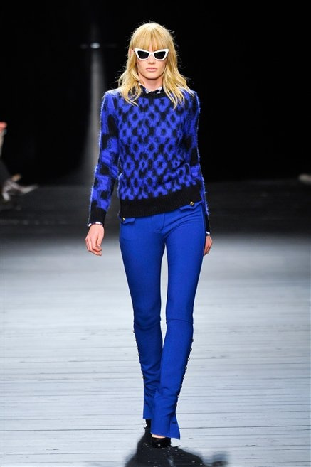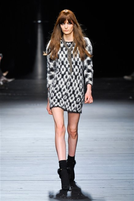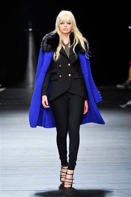 Sembra uscita dal mitico Studio 54 la donna di Iceberg del prossimo autunno-inverno. La maglieria è la protagonista della collezione: trama fitta, disegni optical, colori accesi ( blu elettrico e giallo su tutti), occhiale da gatta e pantalone skinny. Di sera è il luccichio della pista da ballo a prender eil sopravvento: little dress tempestati di paillettes abbaglianti. Tutto non può che essere estremamente strutturato, e le pellicce enfatizzano le spalle larghe.