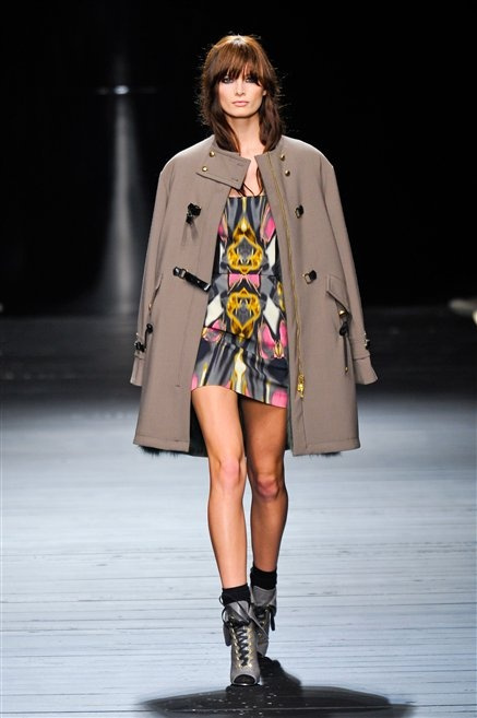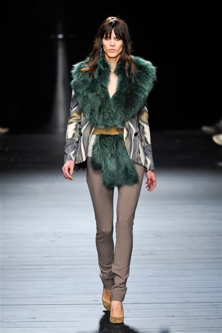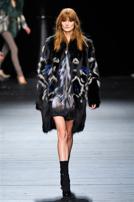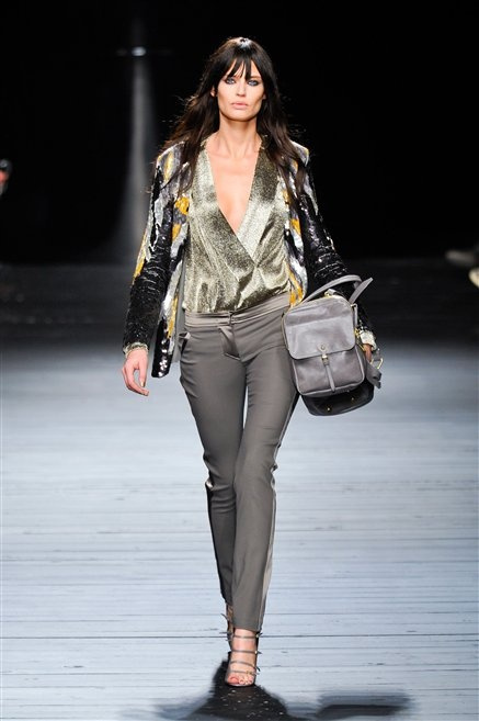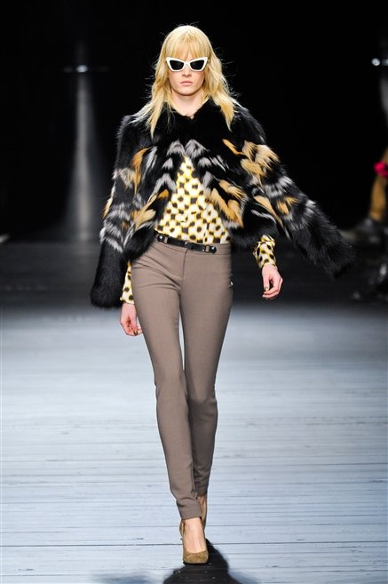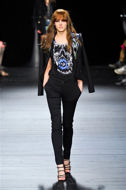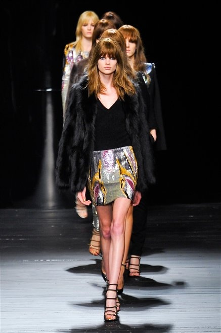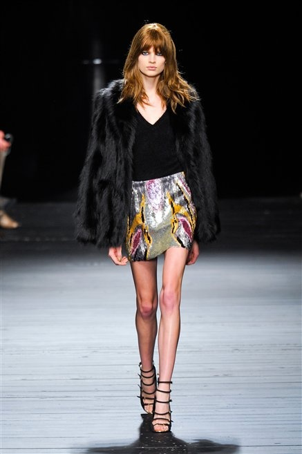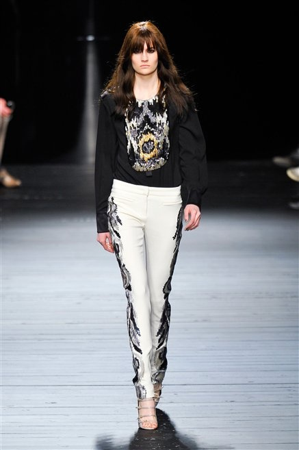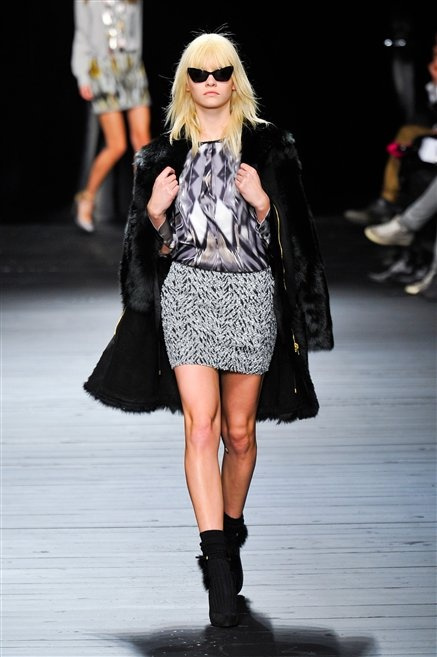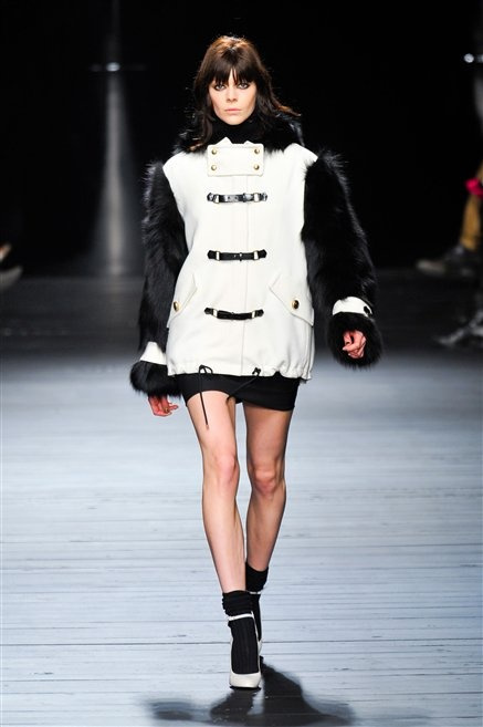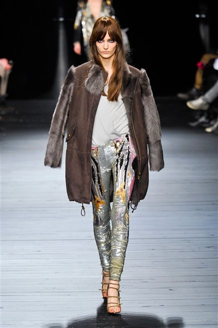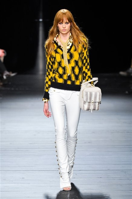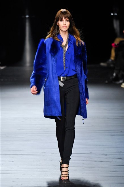 Sembra uscita dal mitico Studio 54 la donna di Iceberg del prossimo autunno-inverno. La maglieria è la protagonista della collezione: trama fitta, disegni optical, colori accesi ( blu elettrico e giallo su tutti), occhiale da gatta e pantalone skinny. Di sera è il luccichio della pista da ballo a prender eil sopravvento: little dress tempestati di paillettes abbaglianti. Tutto non può che essere estremamente strutturato, e le pellicce enfatizzano le spalle larghe.