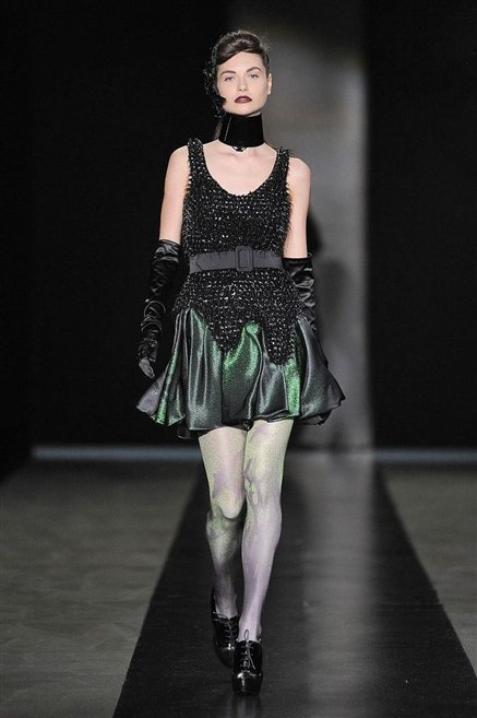 Il designer nascente Sergei Grinko conferisce alla sua collezione un'alloure gotica, misteriosa, futuristica e dark. I tagli sono asciutti e lineari. Le stampe futuristiche danno un effetto space al vestito mentre i colori sono vari e luminosi, accomunati dal nero che domina l'intera sfilata.
