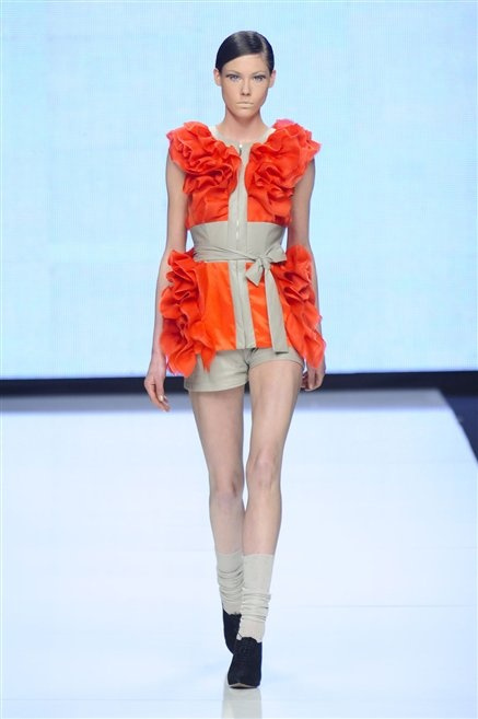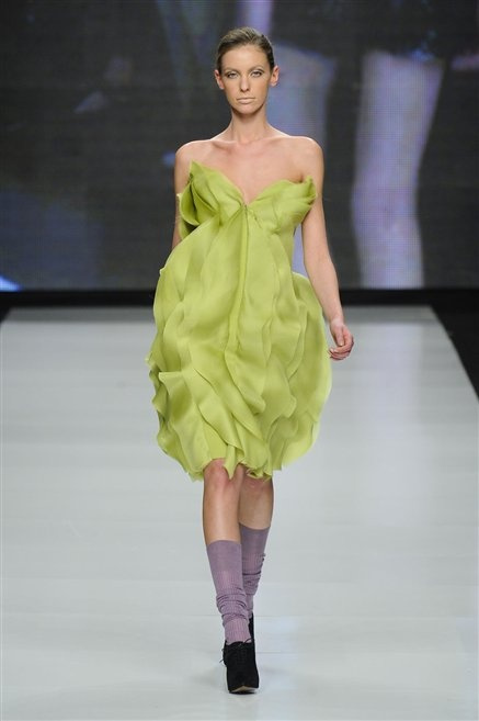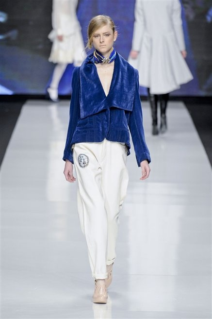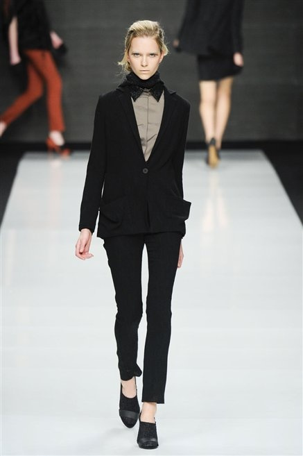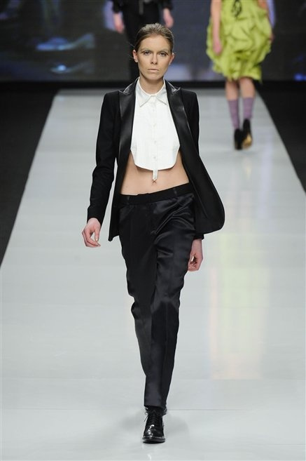 La milanese Anna Francesca Ceccon pensa ad una donna che ruba al guardaroba maschile senza vestire però in modo androgino. Ci sono la giacca da tuxedo indossata con un top che copre solo il seno, i tessuti dei drappeggi, il plastron delle camice, ma anche l’organza, lo chiffon e la georgette. La comodità incontra la femminilità, ma anche la sensualità delle trasparenze e delle scollature.
