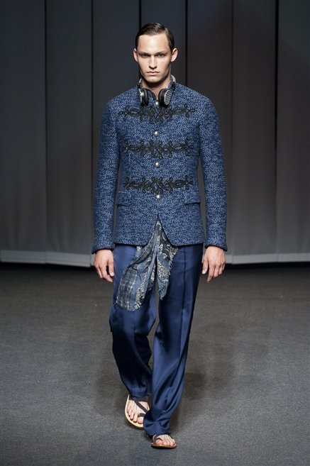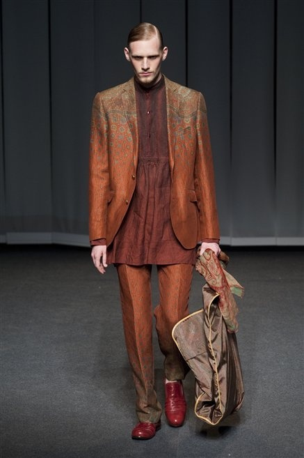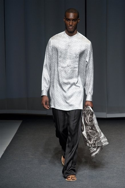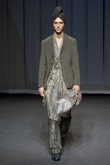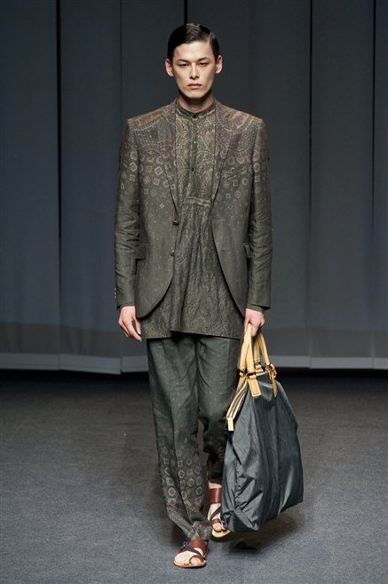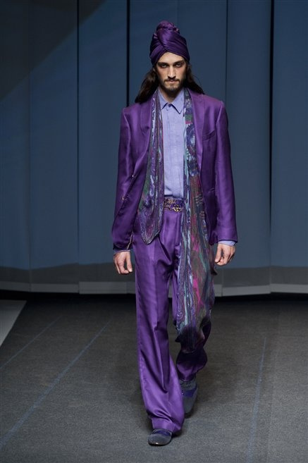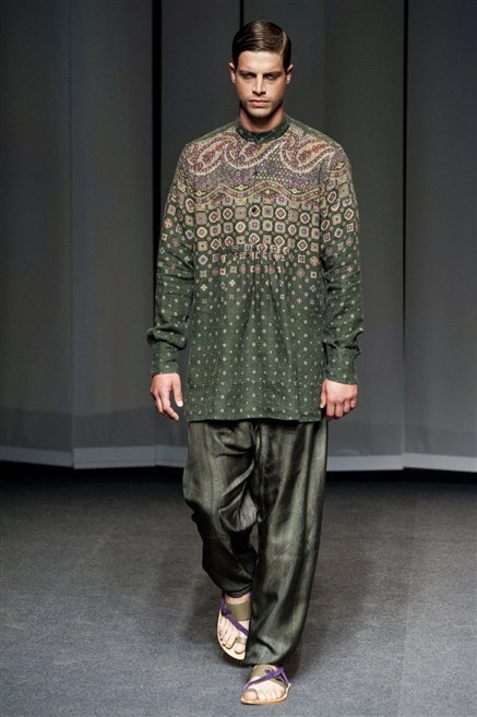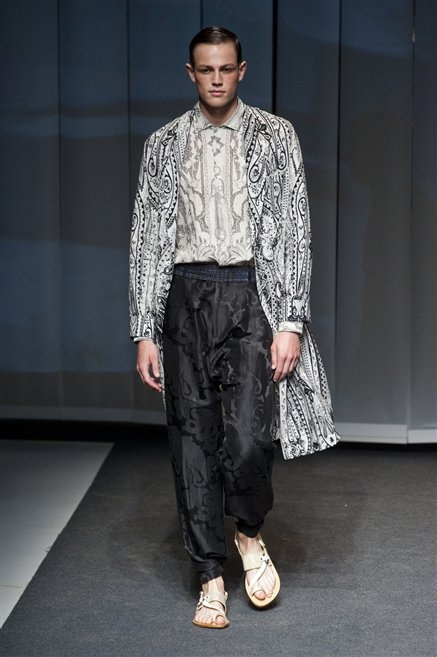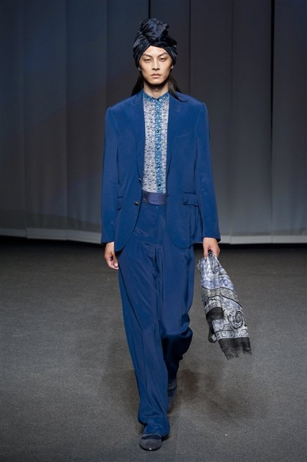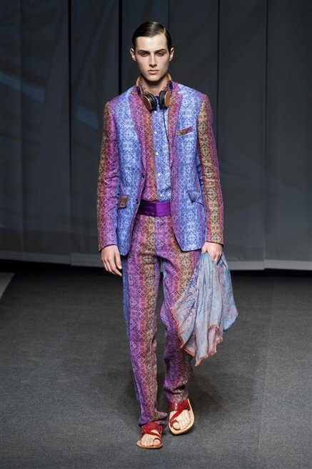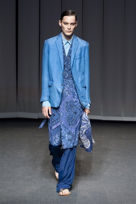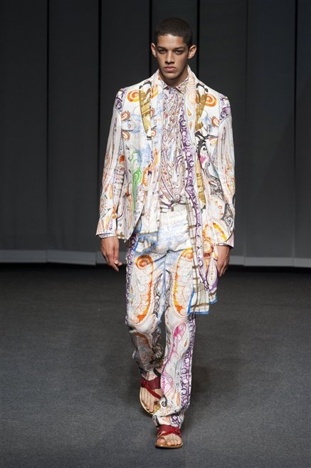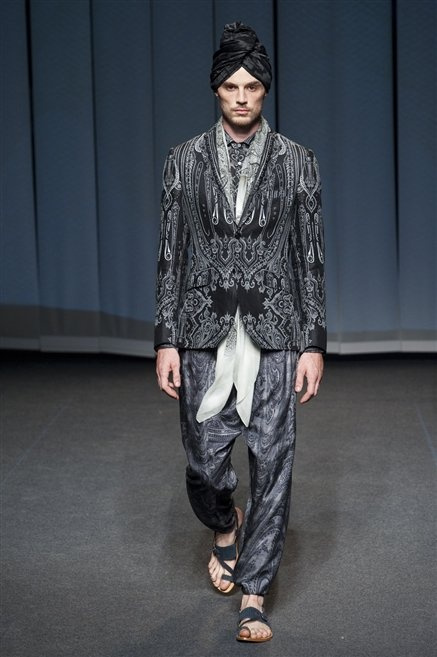 Etro veste Icaro e lo fa ispirandosi alle novelle orientali di Mille e Una Notte. Aspirazioni astratte per una personalità in divenire, che ama mutare a seconda delle emozioni. Come in un caleidoscopio, la collezione Primavera - Estate 2013, presenta giovani maharajah avvolti in casacche colorate. Camicie con collo alla coreana, pantaloni stretti alla caviglia e giacche di lino. Irrinunciabile, la fantasia paisley, così come i turbanti dai colori accesi, simbolo di un'eleganza spirituale.
