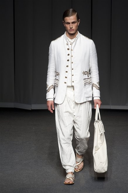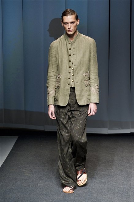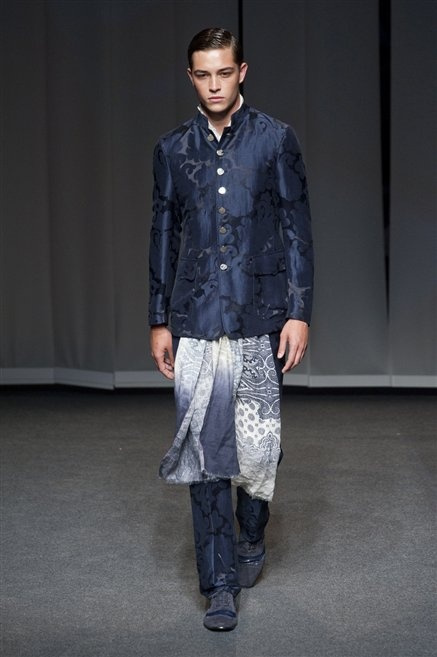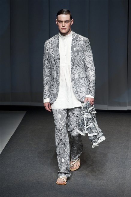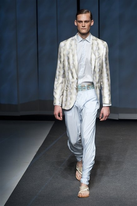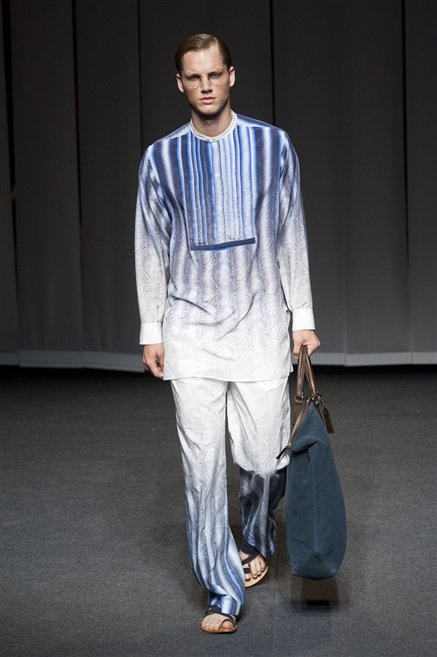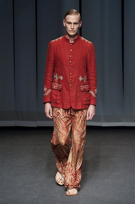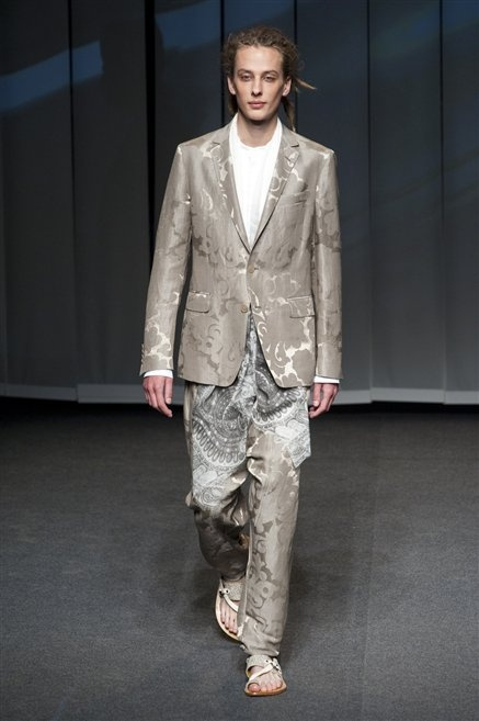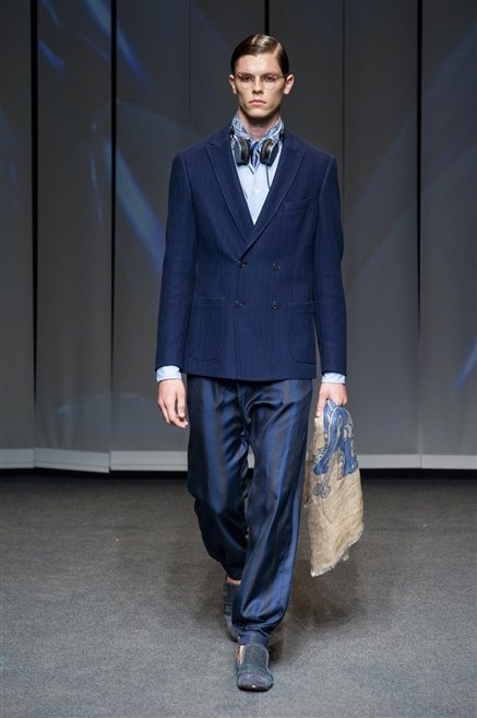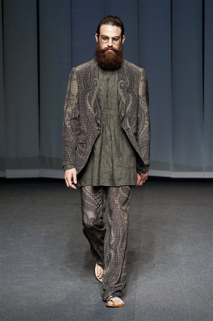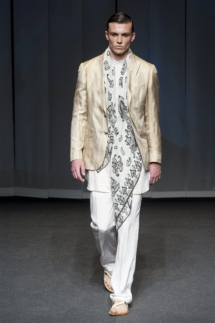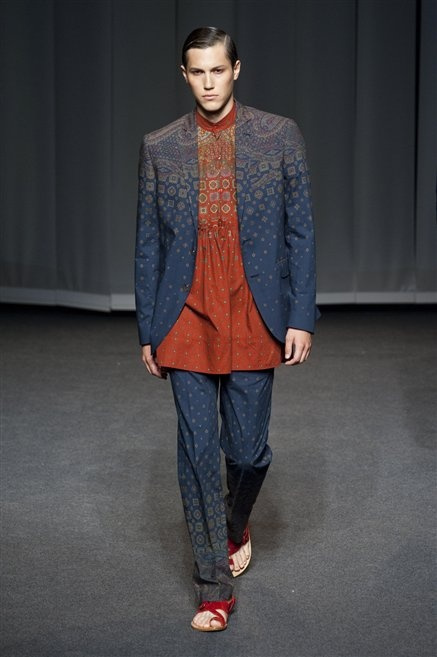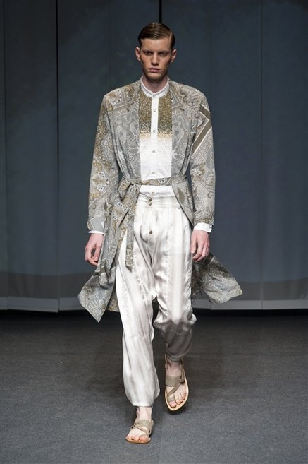 Etro veste Icaro e lo fa ispirandosi alle novelle orientali di Mille e Una Notte. Aspirazioni astratte per una personalità in divenire, che ama mutare a seconda delle emozioni. Come in un caleidoscopio, la collezione Primavera - Estate 2013, presenta giovani maharajah avvolti in casacche colorate. Camicie con collo alla coreana, pantaloni stretti alla caviglia e giacche di lino. Irrinunciabile, la fantasia paisley, così come i turbanti dai colori accesi, simbolo di un'eleganza spirituale.