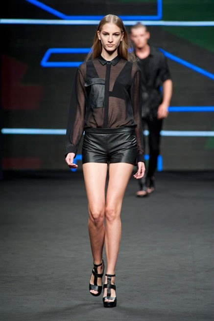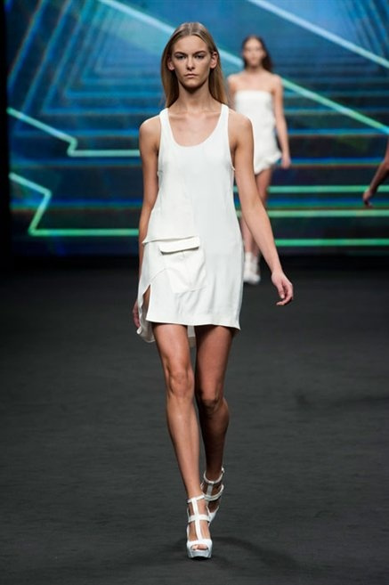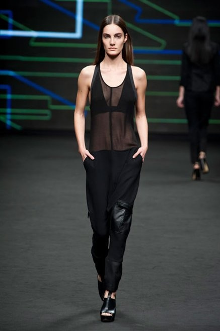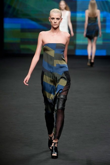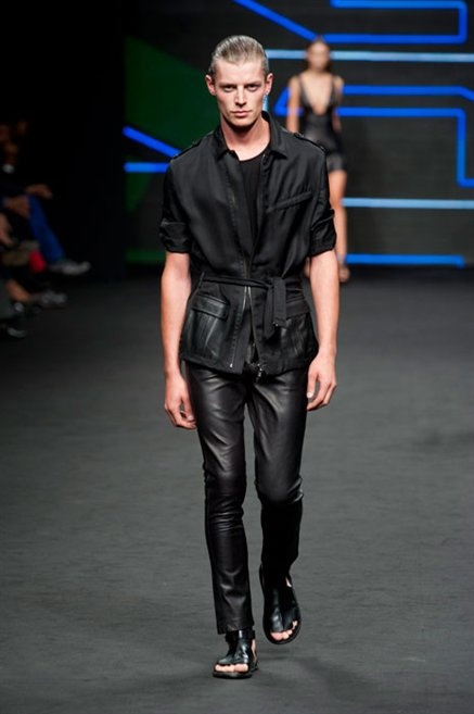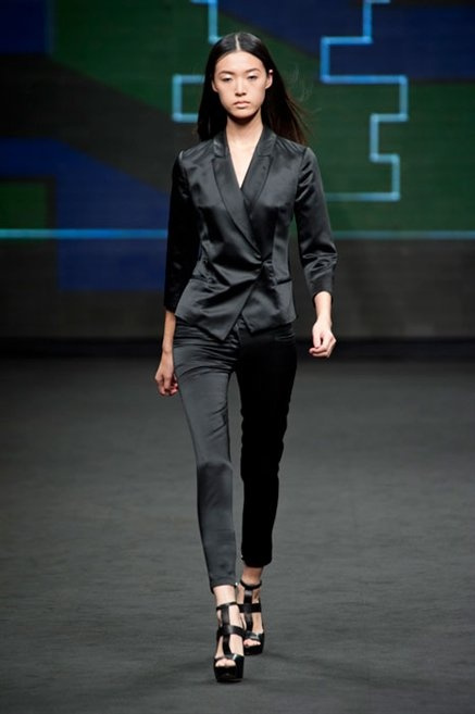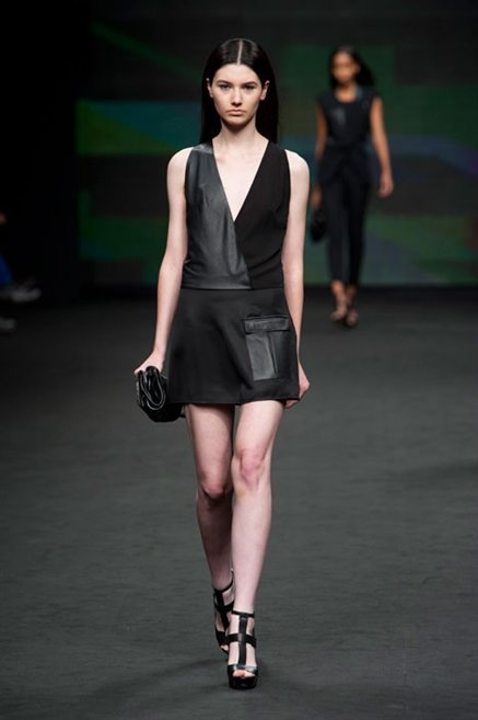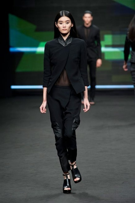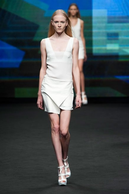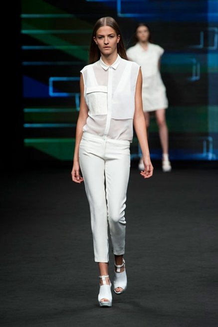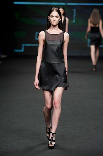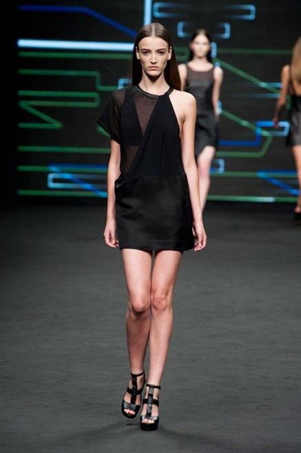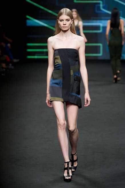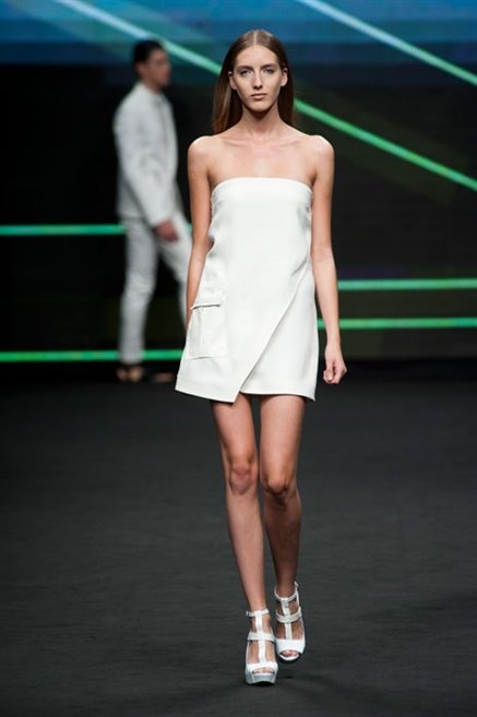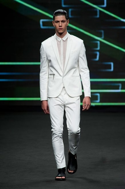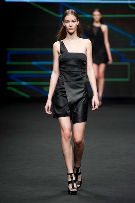 Il verde domina gran parte della collezione e si candida a colore della prossima primavera/estate. Ennio Capasa porta sulla passerella la sua giovane ragazza metropolitana, ma depone la biker delle ultime stagioni e si ispira di più al mondo militare. Gli abiti sono asimmetrici, sembra il tessuto che si ripiega su se stesso, così non imprigiona mai il corpo, il corto vince senza mezzi termini. Tasche ovunque, un po’ per comodità, un po’ per vezzo: sui pantaloni skinny, sui tuxedo jumpsuit, sugli abiti. Le uniche eccezioni al verde militare ( è una regola il monocromo su questa passerella) sono il bianco e il nero.