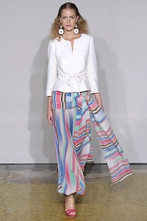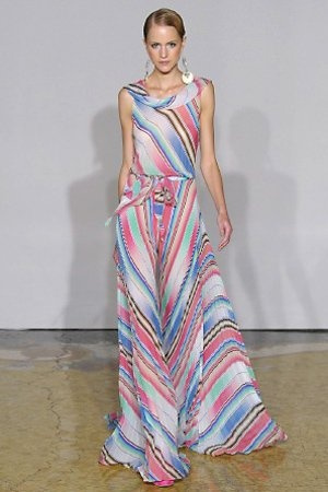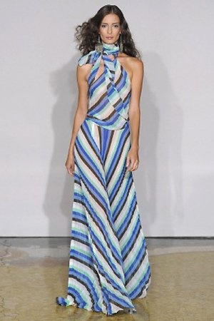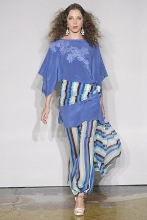 D'estate la donna diventa una instancabile viaggiatrice secondo Lorenzo Riva che costruisce un guardaroba cosmopolita ispirandosi di volta in volta alle tradizioni delle sue mete. Allora sulla passerella compare un'opulenta principessa berbera, una eterea dea dell'Olimpo con i suoi drappeggi, una vacanziera in crociera sul Nilo. In ogni occasione l'eleganza è la parola d'ordine: abiti dalle righe colorate stampate su georgette di seta, jumpsuit da sera con comodi pantaloni larghi plissè oppure bombati e dall'ispirazione arabeggiante, mentre la sahariana smette di essere un capo basico e si arricchisce di stampe floreali.